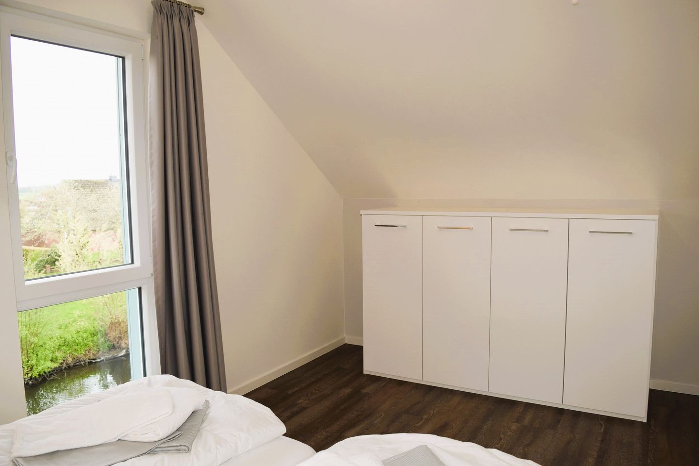 Die erste Etage bietet Ihnen neben zwei Schlafräumen, das große Bad mit ebenerdiger Dusche, Badewanne und hauseigener Sauna.