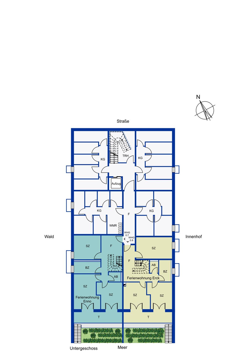 Unsere Anlage befindet sich in einer westlichen Lage, die Ihnen einen barrierefreien Zugang zum 350 m entfernten Strand bietet. Auch das nahegelegene Waldgebiet ist bequem zu erreichen und lädt zu ausgedehnten Spaziergängen ein.