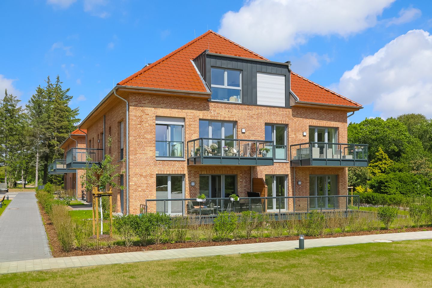 Herzlich Willkommen auf dem 1,03 Hektar großen Gelände am Golfplatz 9b in Wyk auf Föhr, wo wir Ihnen insgesamt 20 moderne und frisch gestaltete Ferienwohnungen anbieten. Unsere Ferienwohnungen bieten auf 51-139 m² Platz für bis zu 6 (teilweise auch für bis zu 8 Personen) Personen und sind barrierearm sowie mit einem Fahrstuhl erreichbar.