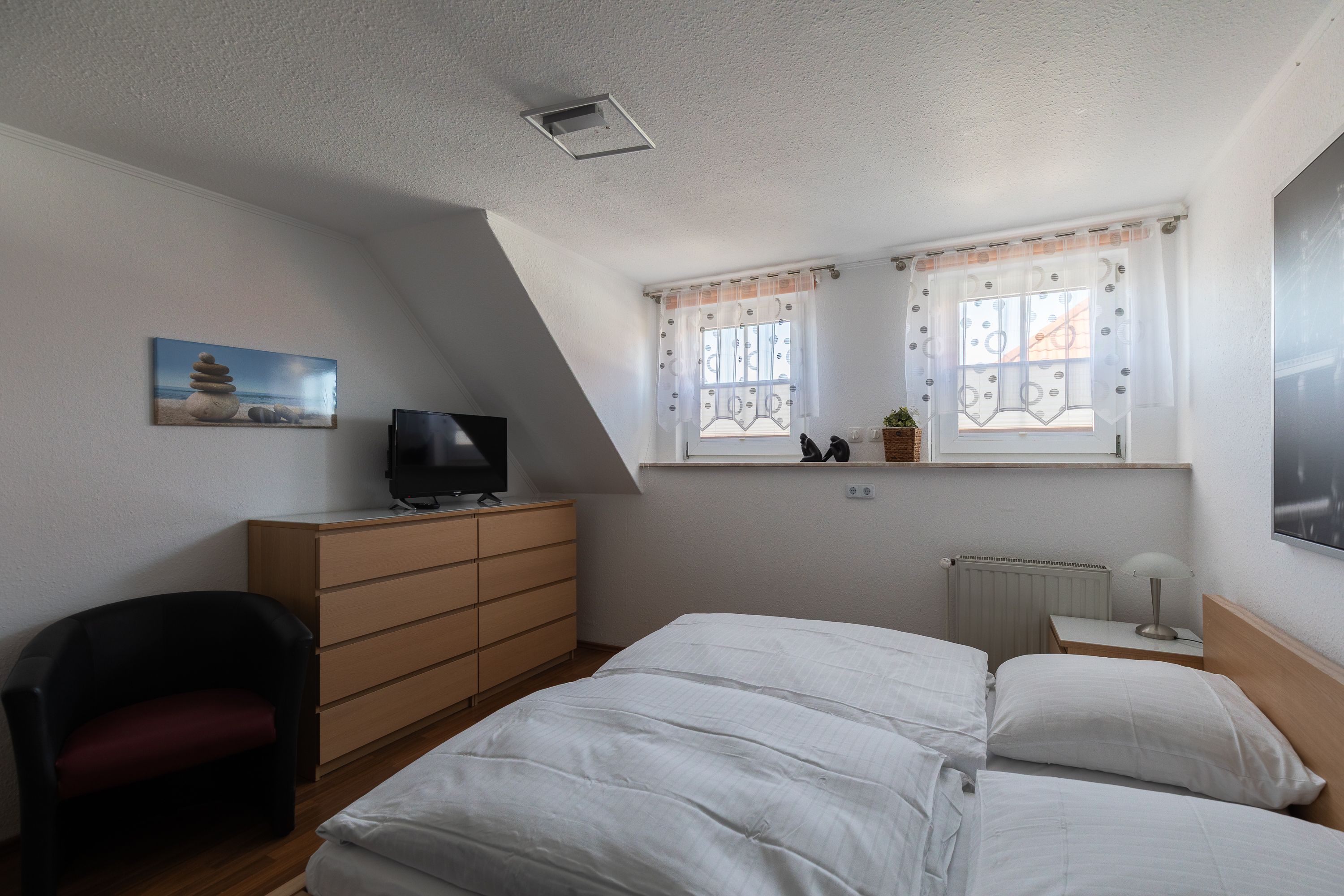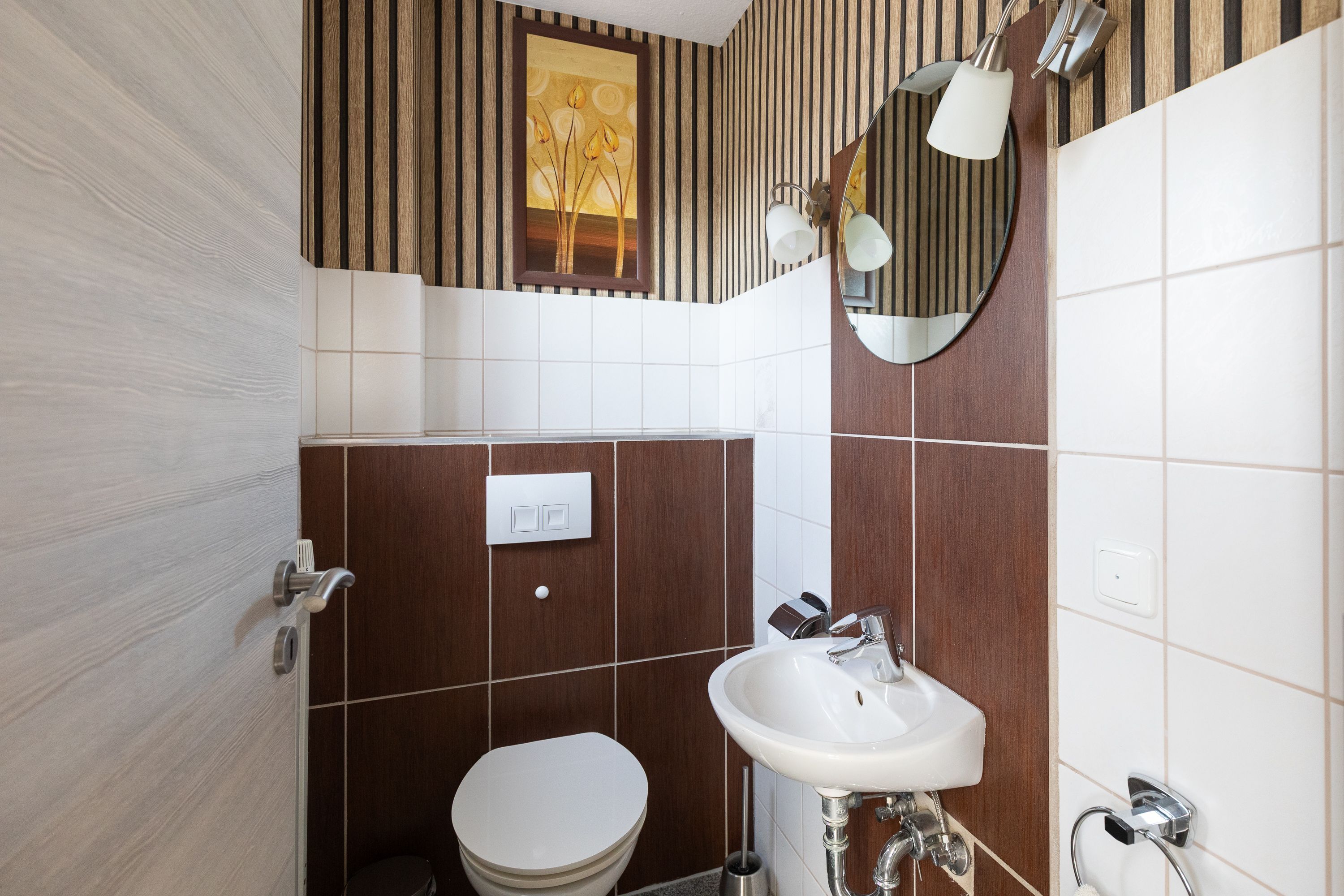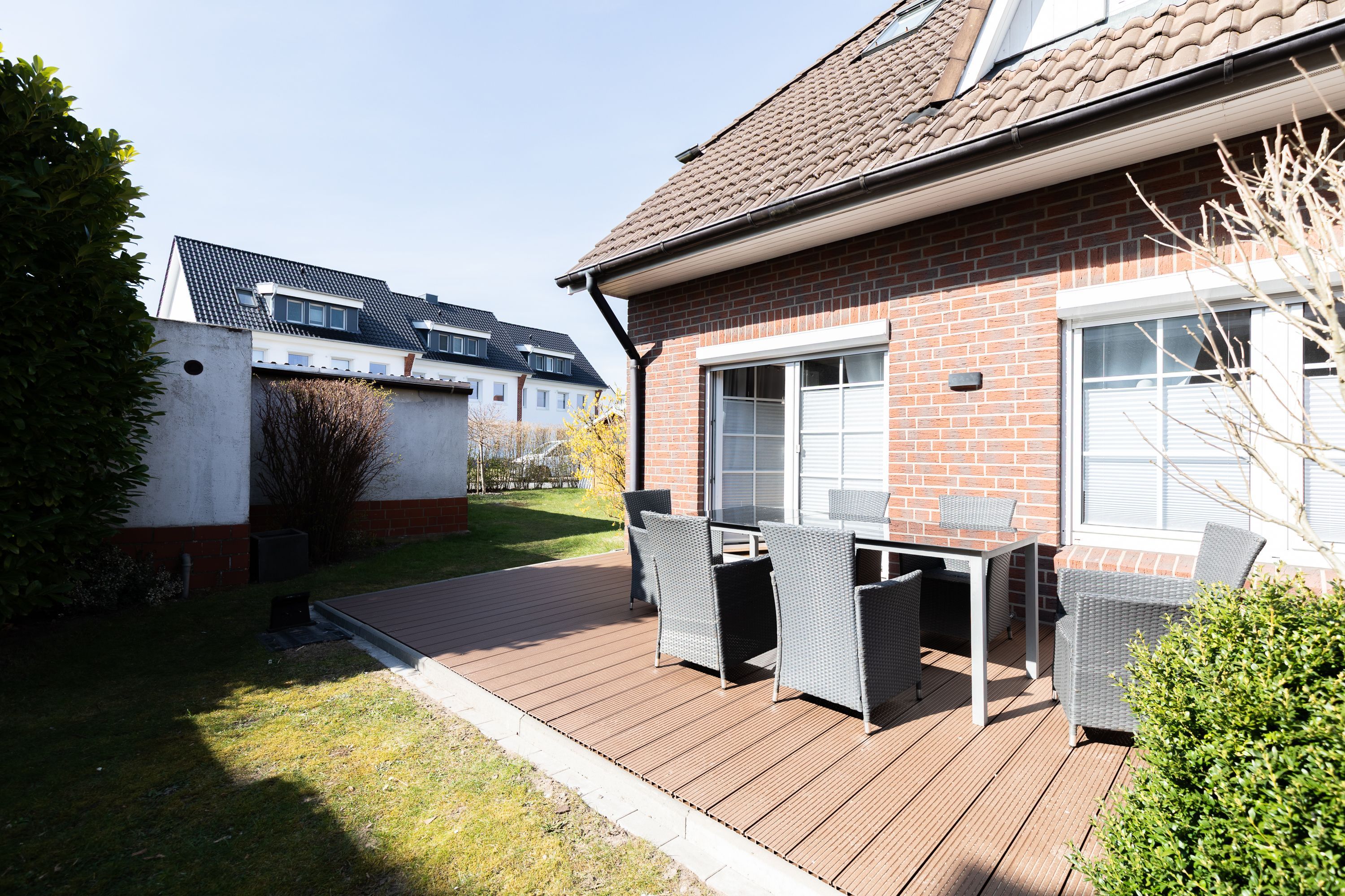 Das modern eingerichtete Ferienhaus mit einer Größe von ca. 140 m² Wohnfläche (300 m² Grundstück) ist komplett bis zu 6 Personen ausgestattet. 2 Schlafzimmer mit jeweils einem Doppelbett, TV und Kleiderschrank, 1 Schlafzimmer mit 2 Einzelbetten und Kleiderschrank, großes Wohnzimmer mit Sofaecke, direktem Zugang in den Garten/Terrasse, Esstisch, TV und elektrischen Aussenrollläden, komplett eingerichtete Einbauküche (Backofen, Cerankochfeld, Geschirrspüler, Toaster, Kaffeemaschine, Wasserkocher, Massimo Kaffeemaschine), Dusche mit WC und Eckbadewanne im Obergeschoss, Gäste WC im Erdgeschoss, Waschmaschine, Bügeleisen und Bügelbrett im Abstellraum, Nichtraucherhaus, keine Haustiere, Garage direkt am Haus.