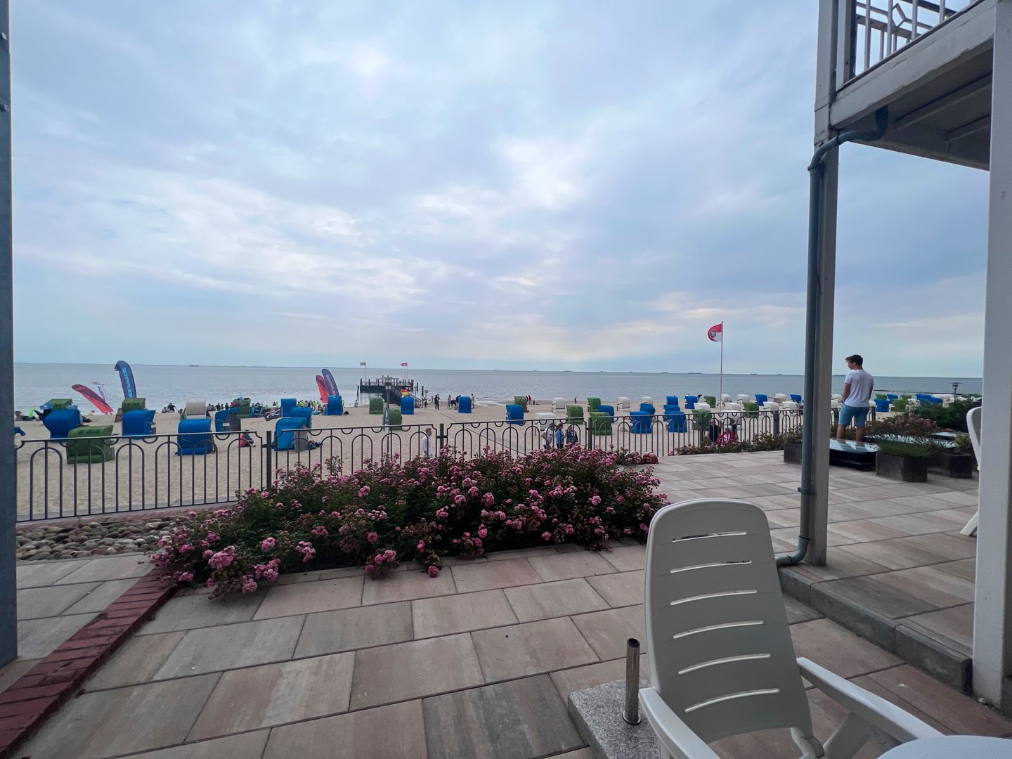 Genießen Sie Ihren Urlaub in dieser super zentralen Lage mit Meerblick. Der Balkon in fast allen Wohnungen ist so überdacht, so dass Sie auch bei Regen draußen sitzen können. Starten Sie den Tag mit einem Frühstück am Meer und genießen Sie den traumhaften Blick direkt auf die Nordsee und die vorbeifahrenden Fähren. Wenn Sie mit dem Fahrrad unterwegs sein sollten, bietet das Appartement auch eine Abstellmöglichkeit direkt vom Haus.