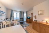 Die 39 m² große 2-Zimmer Ferienwohnung ist ideal für 2 Personen geeignet. Besonders hervorzuheben sind die strandnahe Lage und der Balkon mit Blick zum Deich.