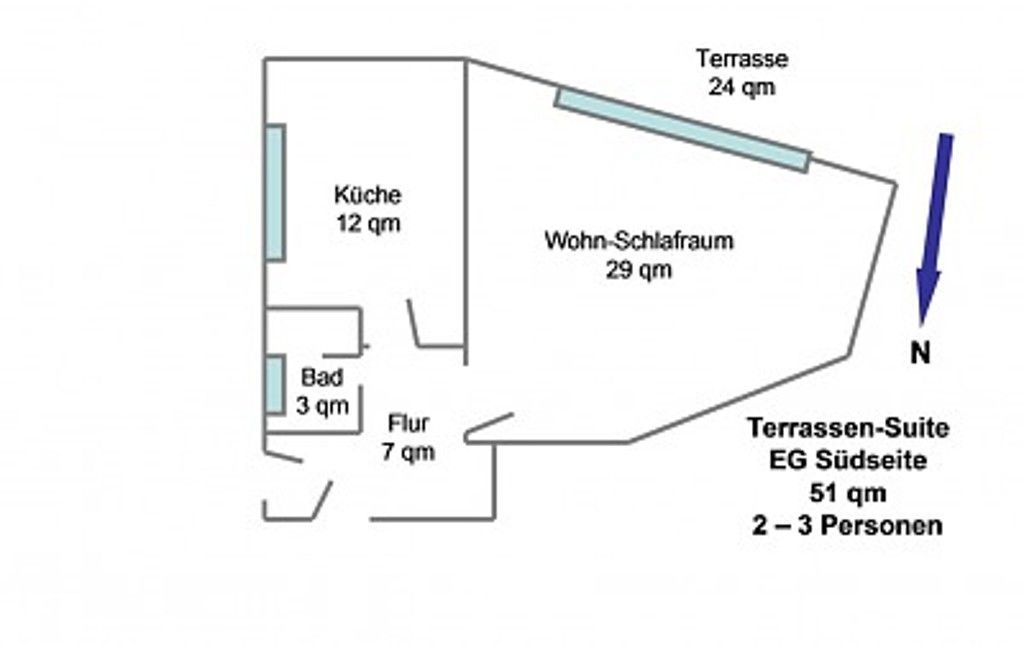 Die Wohnung 3 verfügt über 1 Zimmer - Wohn- und Schlafraum, Küche (komplett ausgestattet) und Bad mit Dusche und WC.