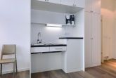 Das Apartment ist mit einer kleinen, aber feinen Pantryküche ausgestattet. Diese verfügt u. a. über ein Gefrierfach, eine Kaffeemaschine, einen Toaster und einen Wasserkocher. Das stilvolle und behindertenfreundliche Bad ist mit einer großzügigen Dusche und Sitzgelegenheit ausgestattet. Der Spiegel über dem Waschtisch ist verstellbar und neben dem WC befinden sich Griffe. Zudem sind Badeingang und alle weiteren Türen im Apartment 95 cm breit. Im Badezimmer befinden sich zudem ein Föhn und Kosmetikspiegel. Das moderne Wohn- und Schlafzimmer bietet euch einen großen Flatscreen-TV, eine HiFi-Anlage und eine Einzelschlafcouch. Ein Kinderbett kann gegen Entgelt im Wohnbereich aufgestellt werden. Nach einem erholsamen Urlaubstag könnt ihr auf der westseitigen Terrasse, ausgestattet mit einem Strandkorb, entspannen.
