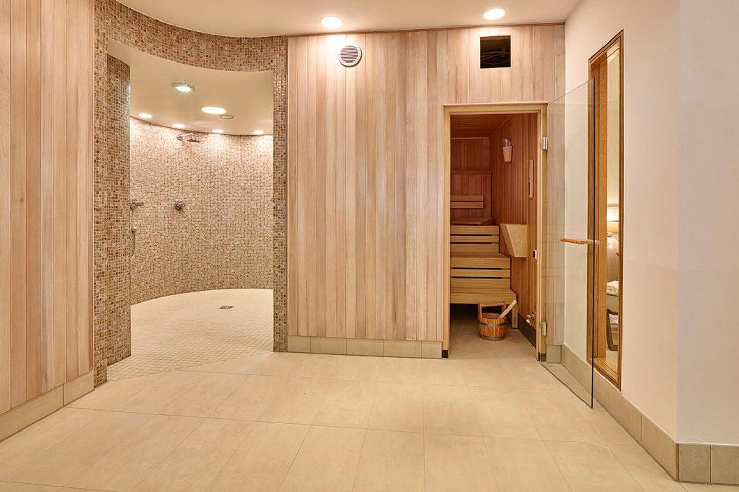 Der großzügige Saunabereich mit finnischer Sauna, Softsauna, Fußbecken, Ruheraum und Lesebereich des Aparthotels sind für euch inklusive. Bademäntel und Saunatücher sind auf Wunsch und gegen Entgelt an der Rezeption erhältlich.