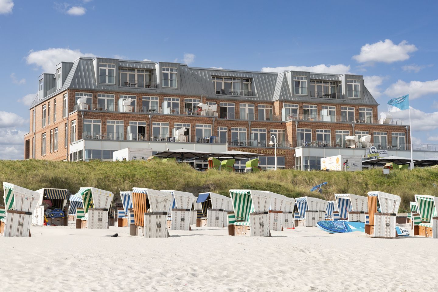 Das großzügige und elegante Apartment befindet sich in Süd-Ost-Lage im ersten Obergeschoss des Aparthotels Anna Düne. Der weitläufige Sandstrand und die Promenade sind nur wenige Meter entfernt. In der unmittelbaren Umgebung findet ihr zahlreiche Einkaufsmöglichkeiten, Restaurants und Cafés. Freizeitangebote wie z. B. das Meerwasser-Freizeitbad, das Tennis-Center oder die Surfschule sind fußläufig bequem zu erreichen.