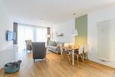 Die 59 m² große 3-Zimmer Ferienwohnung ist für bis zu 5 Personen geeignet. Besonders hervorzuheben ist die Terrasse in sonniger West-Lage mit eigener kleiner Grünfläche. Hier lässt sich den ganzen Tag das wohltuende Meeresklima des Nordseeheilbades genießen.