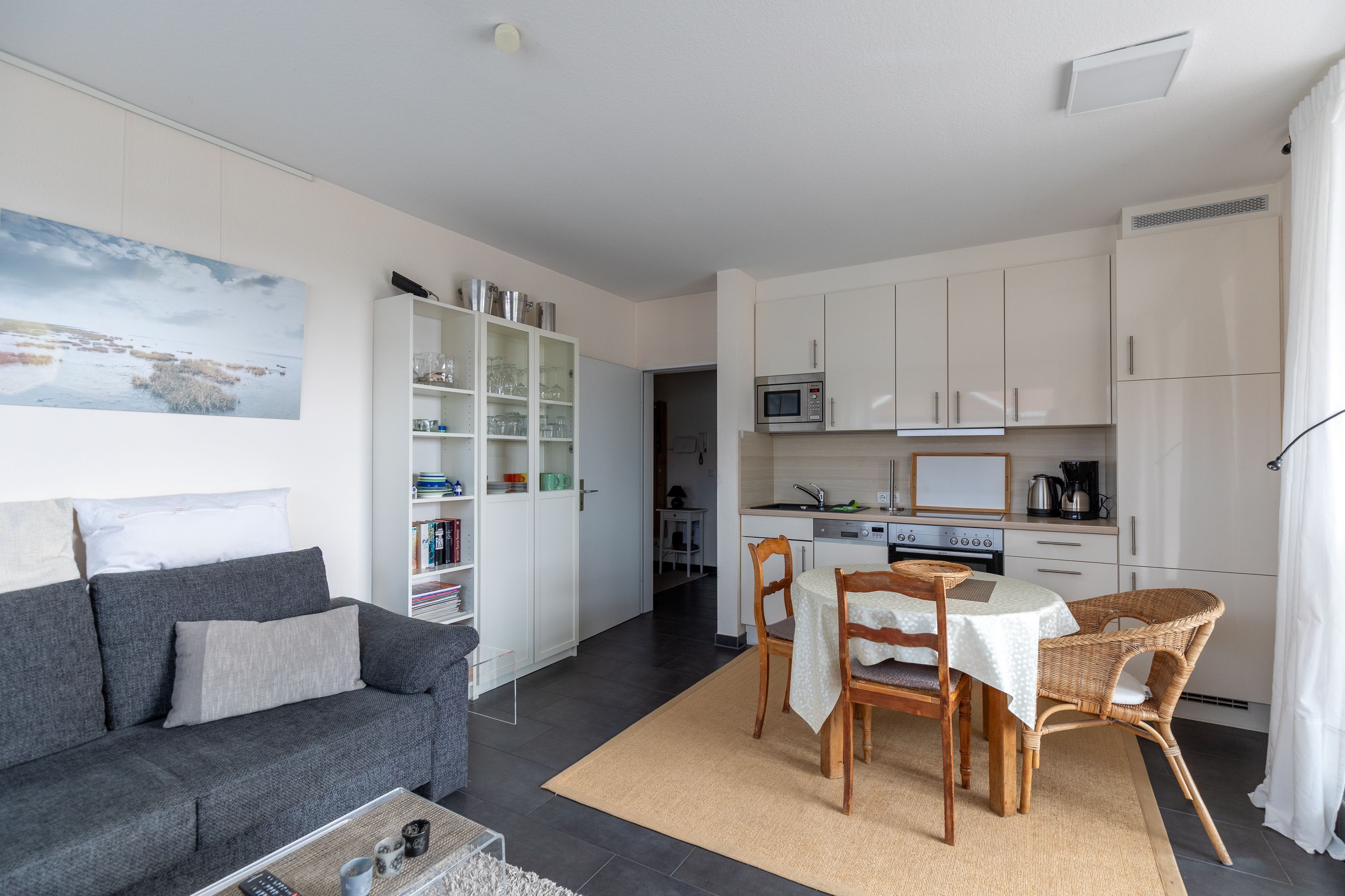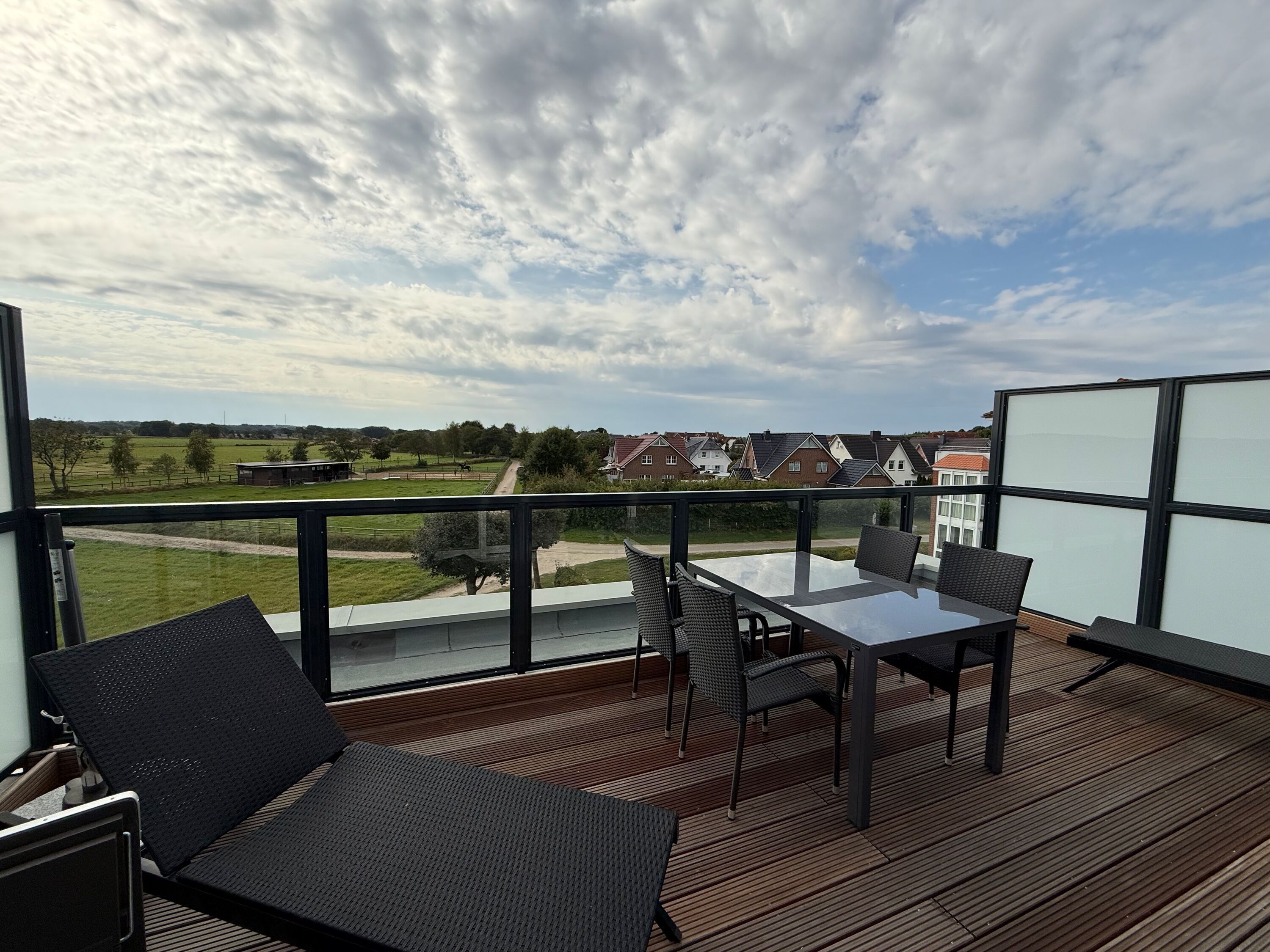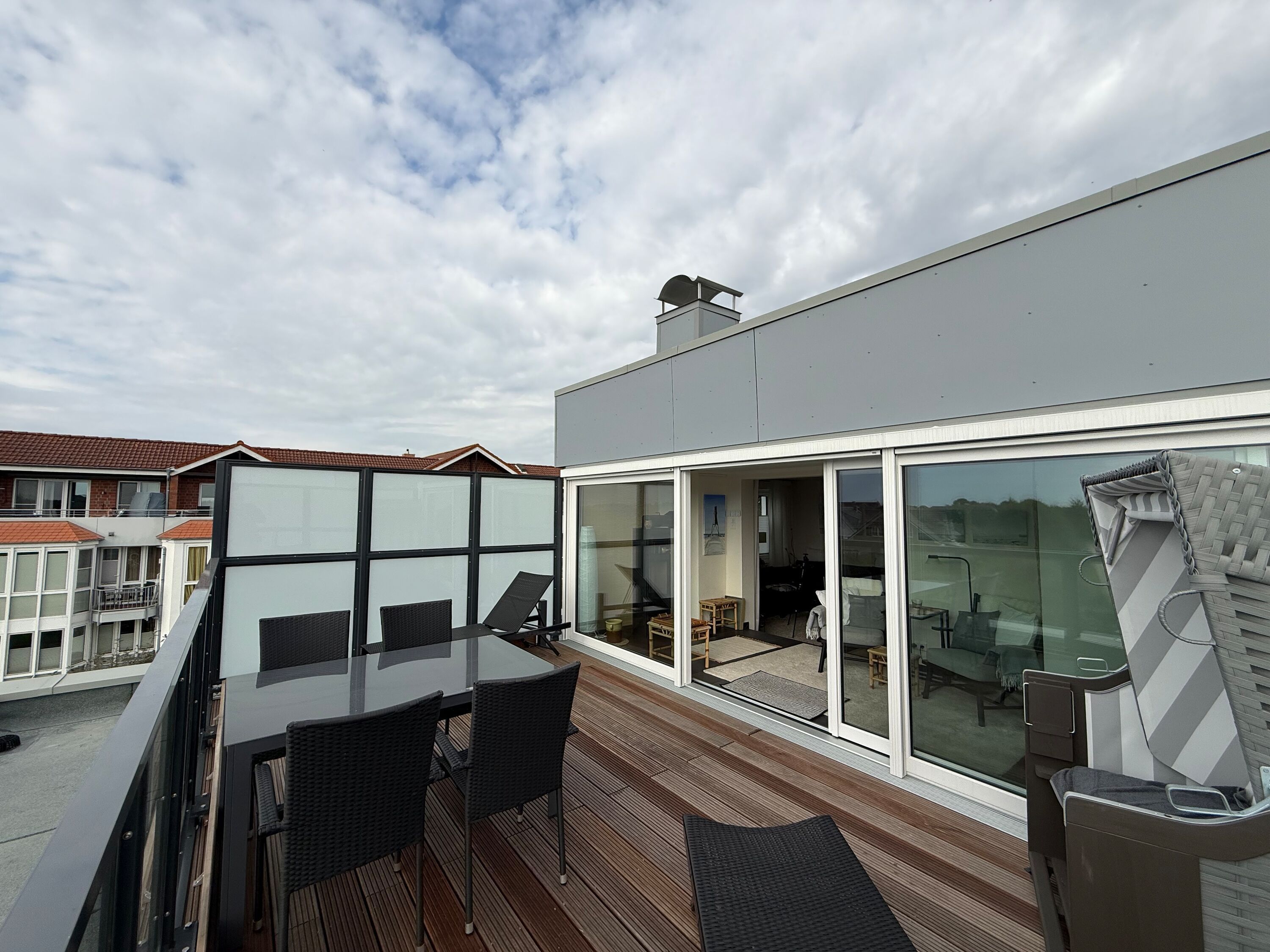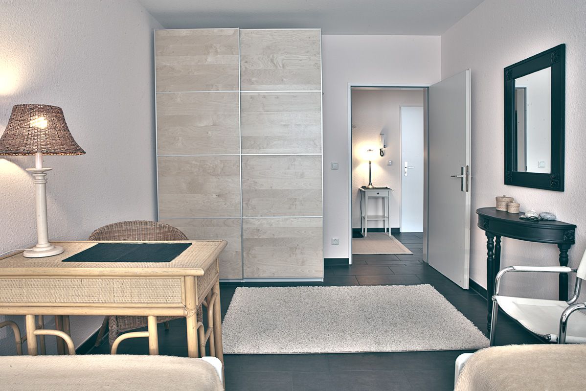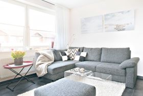 Die modern eingerichtete Wohnung (ca. 62m²) ist für bis zu 2 Personen ausgestattet. 1 Schlafzimmer mit 2 Einzelbetten und TV, Wohnzimmer mit gemütlichem Ecksofa, Flatscreen TV, Mini Stereoanlage, Essplatz mit 4 Stühlen und Zugang zum Wintergarten mit Kamin und großer Dachterrasse (mit Strandkorb, Liegen und Stühlen), Küchenzeile (Ceranfeld, Mikrowelle, Kaffeemaschine, Wasserkocher, Toaster, Geschirrspüler), 1 Bad mit ebenerdiger Dusche und WC, Flur, PKW-Stellplatz am Haus, Nichtraucher, es sind keine Tiere erlaubt.