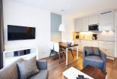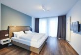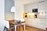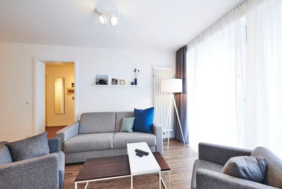 Das moderne und geschmackvoll eingerichtete Nichtraucher-Apartment verfügt über kostenfreies WLAN. Der Wohnbereich mit Schlafcouch bietet eine voll ausgestattete offene Küchenzeile mit Geschirrspüler, Gefrierfach, Kaffeemaschine, Toaster, Wasserkocher und Mikrowelle mit Backfunktion sowie einen großen Flatscreen-TV und ein Radio. Das Apartment verfügt über einen Esstisch für 5 Personen und einen behaglichen Sitzbereich. Zwei separate Schlafzimmer mit jeweils einem Doppelbett und zwei Einzelbetten stehen euch zur Verfügung. Eines davon verfügt zudem über einen eigenen Flatscreen-TV, das andere ist ein Alkoven-Schlafzimmer. Ein Kinderbett kann gegen Entgelt aufgestellt werden. Im stilvollen Badezimmer befinden sich eine große begehbare Dusche sowie ein Waschtisch mit Föhn und Kosmetikspiegel. Nach einem erlebnisreichen Urlaubstag lässt es sich auf den beiden überdachten und mit Gartenmöbeln für 5 Personen ausgestatteten Balkonen wunderbar entspannen. Die Balkone sind vom Wohnbereich bzw. vom Hauptschlafzimmer aus zugänglich.