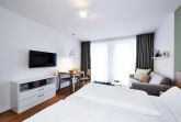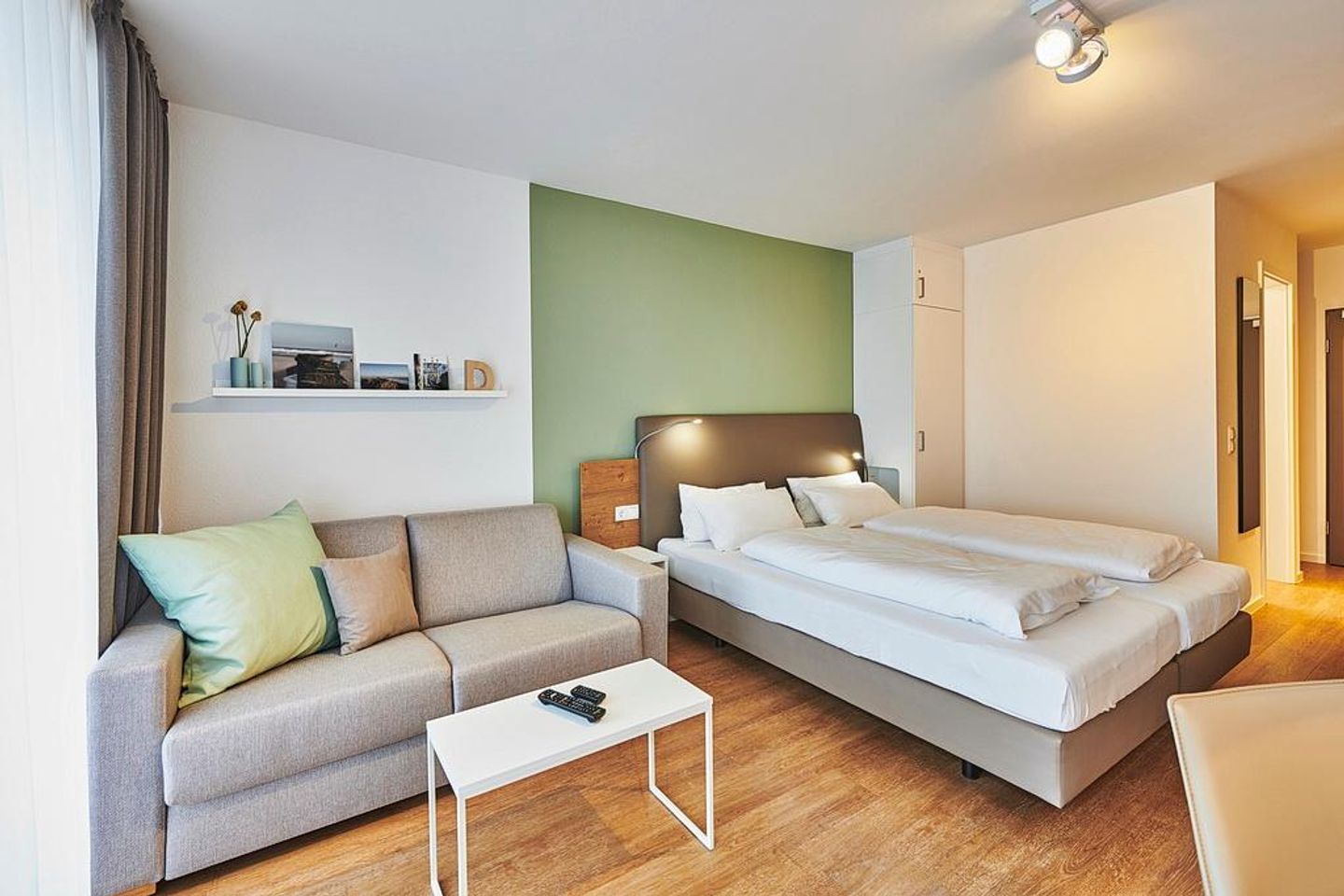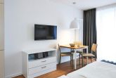 Das geschmackvoll eingerichtete Nichtraucher-Apartment verfügt über kostenfreies WLAN. Der Wohn- und Schlafbereich bietet eine voll ausgestattete offene Küchenzeile mit Geschirrspüler, Gefrierfach, Kaffeemaschine, Toaster, Wasserkocher und Mikrowelle mit Backfunktion sowie ein Doppelbett, einen großen Flatscreen-TV und ein Radio. Das Apartment verfügt über einen Esstisch für 3 Personen und einen behaglichen kleinen Sitzbereich. Ein Kinderbett kann gegen Entgelt aufgestellt werden. Im stilvollen Badezimmer befinden sich eine große begehbare Dusche sowie ein Waschtisch mit Föhn und Kosmetikspiegel. Nach einem erlebnisreichen Urlaubstag entspannt ihr auf dem überdachten und mit Gartenmöbeln für 3 Personen ausgestatteten Balkon.