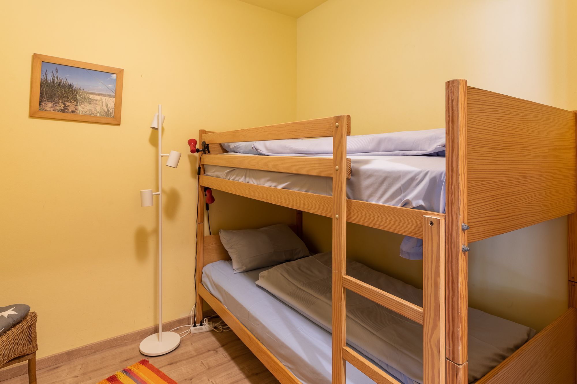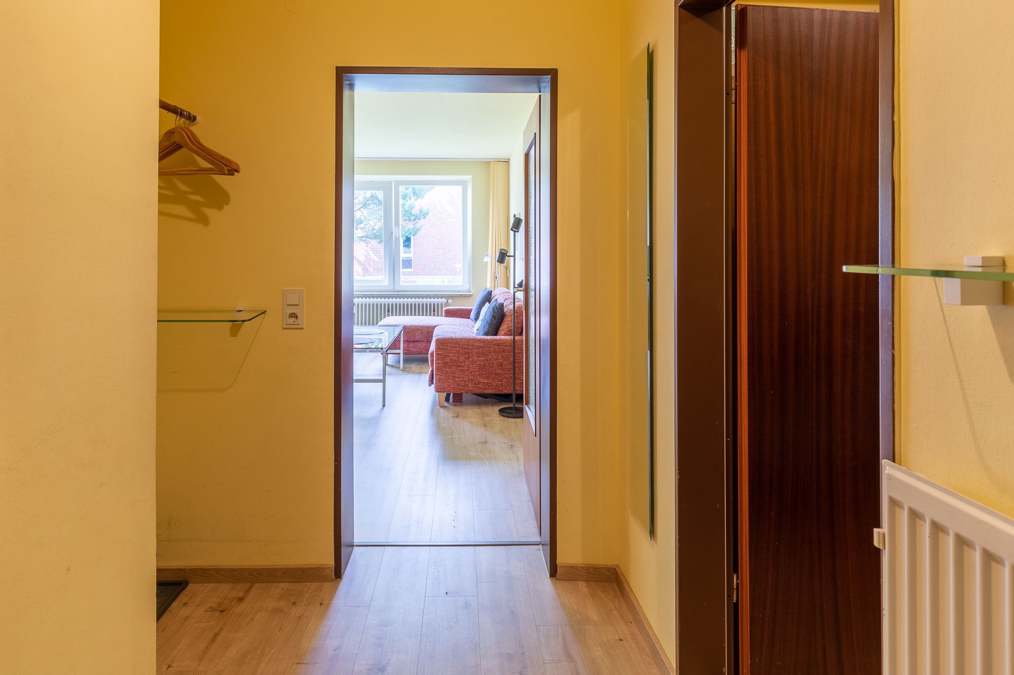 Mit einer Größe von ca. 46 m² Wohnfläche ist die Wohnung komplett bis zu 4 Personen ausgestattet, Wohnzimmer mit Küchenzeile (Cerankochfeld, Toaster, Wasserkocher, Kaffeemaschine, Kühlschrank, Mikrowelle), Essplatz, Sofa-Ecke, 1. Schlafzimmer mit 2 Einzelbetten, 2. Schlafzimmer mit Etagenbett (innenliegend), Bad mit Dusche und WC, 1 Flatscreen TV im Wohnzimmer, Nichtraucherwohnung, PKW-Stellplatz direkt am Haus.