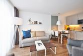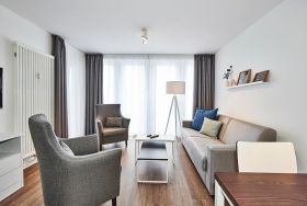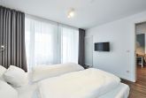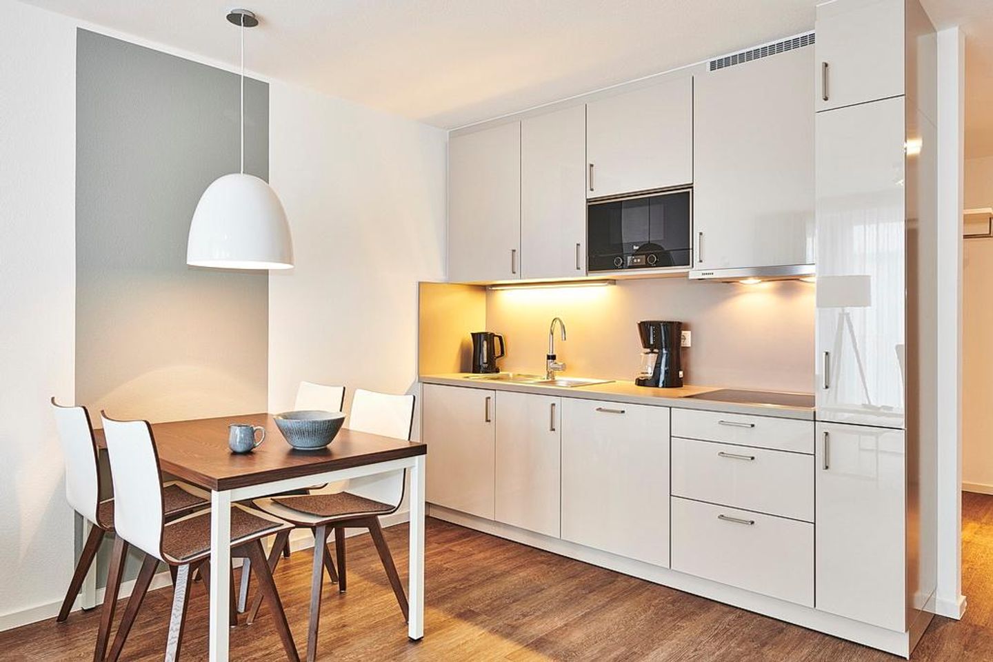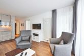 Das geschmackvoll eingerichtete Nichtraucher-Apartment verfügt über kostenfreies WLAN. Der Wohnbereich mit Schlafcouch bietet eine voll ausgestattete offene Küchenzeile mit Geschirrspüler, Gefrierfach, Kaffeemaschine, Toaster, Wasserkocher und Mikrowelle mit Backfunktion sowie einen großen Flatscreen-TV und ein Radio. Das Apartment verfügt über einen Esstisch für 4 Personen und einen behaglichen Sitzbereich. Ein Schlafzimmer verfügt über ein Doppelbett und einen eigenen Flatscreen-TV, ein weiteres Schlafzimmer über zwei Einzelbetten. Ein Kinderbett kann gegen Entgelt aufgestellt werden. Im stilvollen Badezimmer befinden sich eine große begehbare Dusche sowie ein Waschtisch mit Föhn und Kosmetikspiegel. Nach einem erlebnisreichen Urlaubstag entspannt ihr auf dem überdachten und mit Gartenmöbeln für 4 Personen ausgestatteten Balkon. Der Balkon ist vom Wohnbereich und vom Hauptschlafzimmer aus zugänglich.