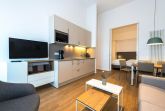 Das barrierearme Nichtraucher-Apartment verfügt über kostenfreies WLAN. Der Wohnbereich bietet eine voll ausgestattete offene Küchenzeile mit Geschirrspüler, Gefrierfach, Kaffeemaschine, Toaster, Wasserkocher und Mikrowelle mit Grillfunktion sowie einen großen Flatscreen-TV und Radio. Das Apartment verfügt über einen Esstisch und einen behaglichen Sitzbereich. Im separaten Schlafzimmer befindet sich ein Doppelbett und ein zweiter Flatscreen-TV, in einem weiteren Schlafbereich mit Schiebetür steht euch ebenfalls ein Doppelbett zur Verfügung. Ein Kinderbett kann gegen Entgelt aufgestellt werden. Im stilvollen Badezimmer befinden sich eine große begehbare Dusche, eine Badewanne sowie ein Waschtisch mit Föhn und Kosmetikspiegel. Nach einem erholsamen Urlaubstag lässt es sich auf der geschützten Loggia herrlich entspannen.
