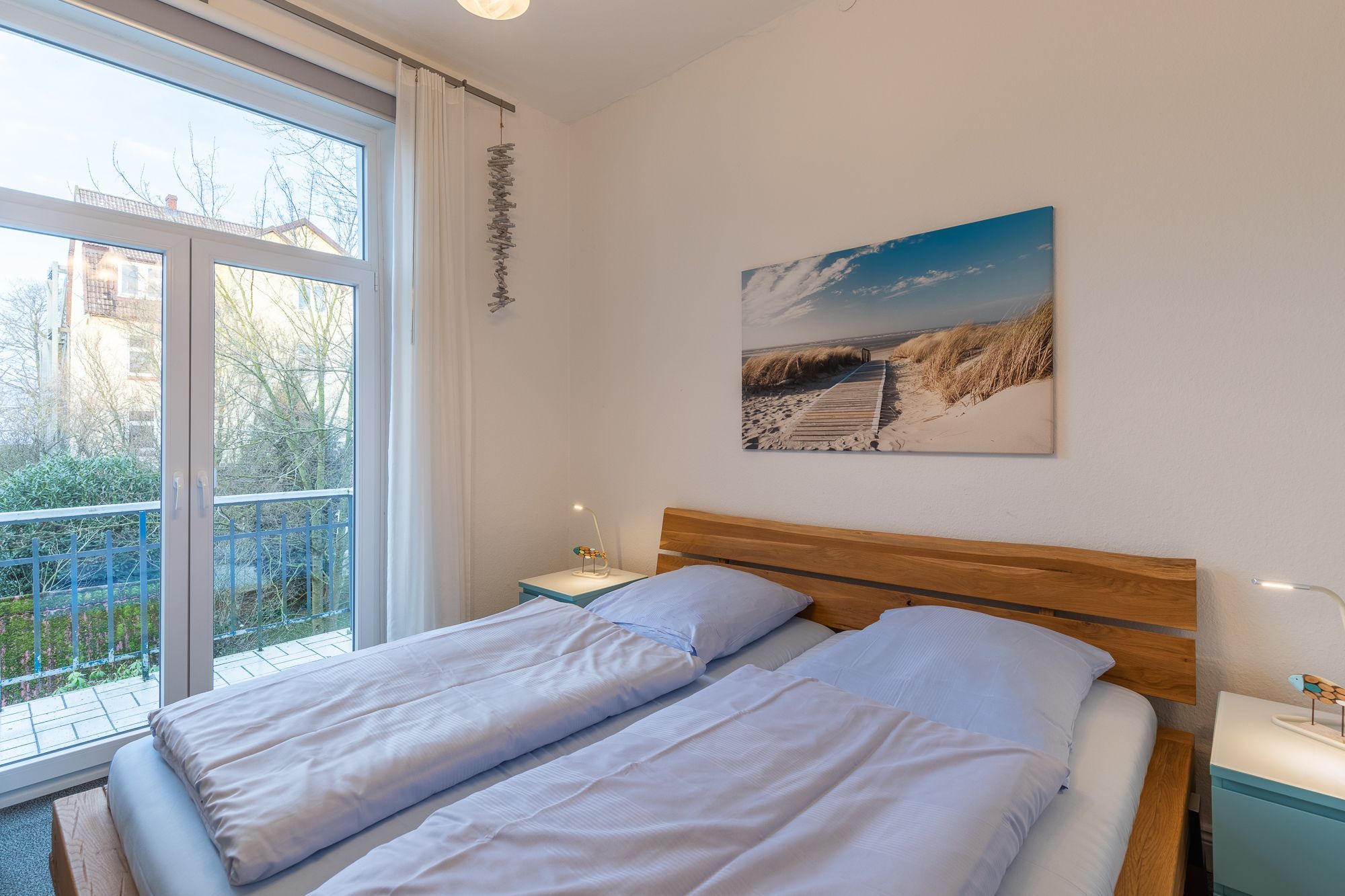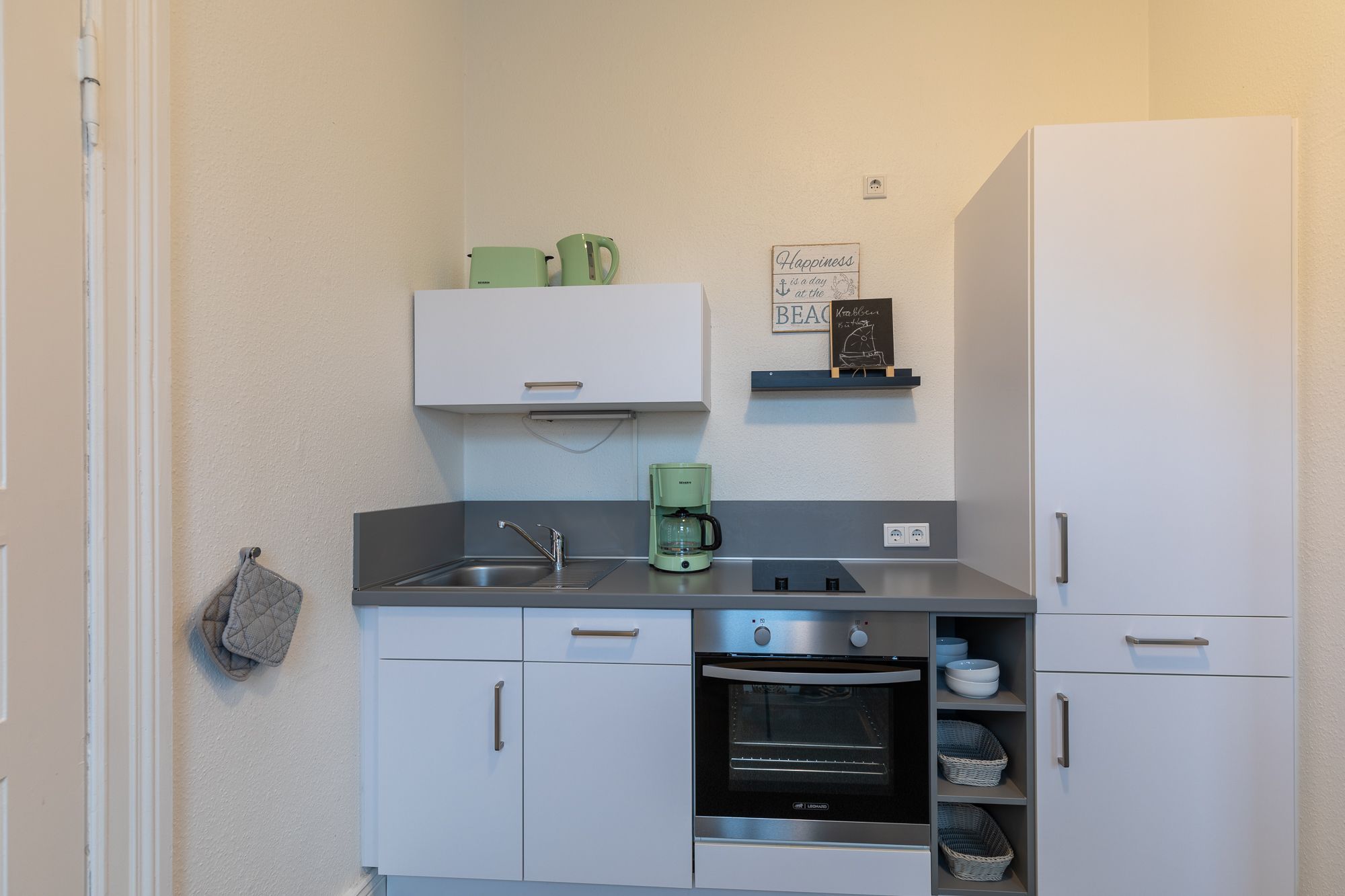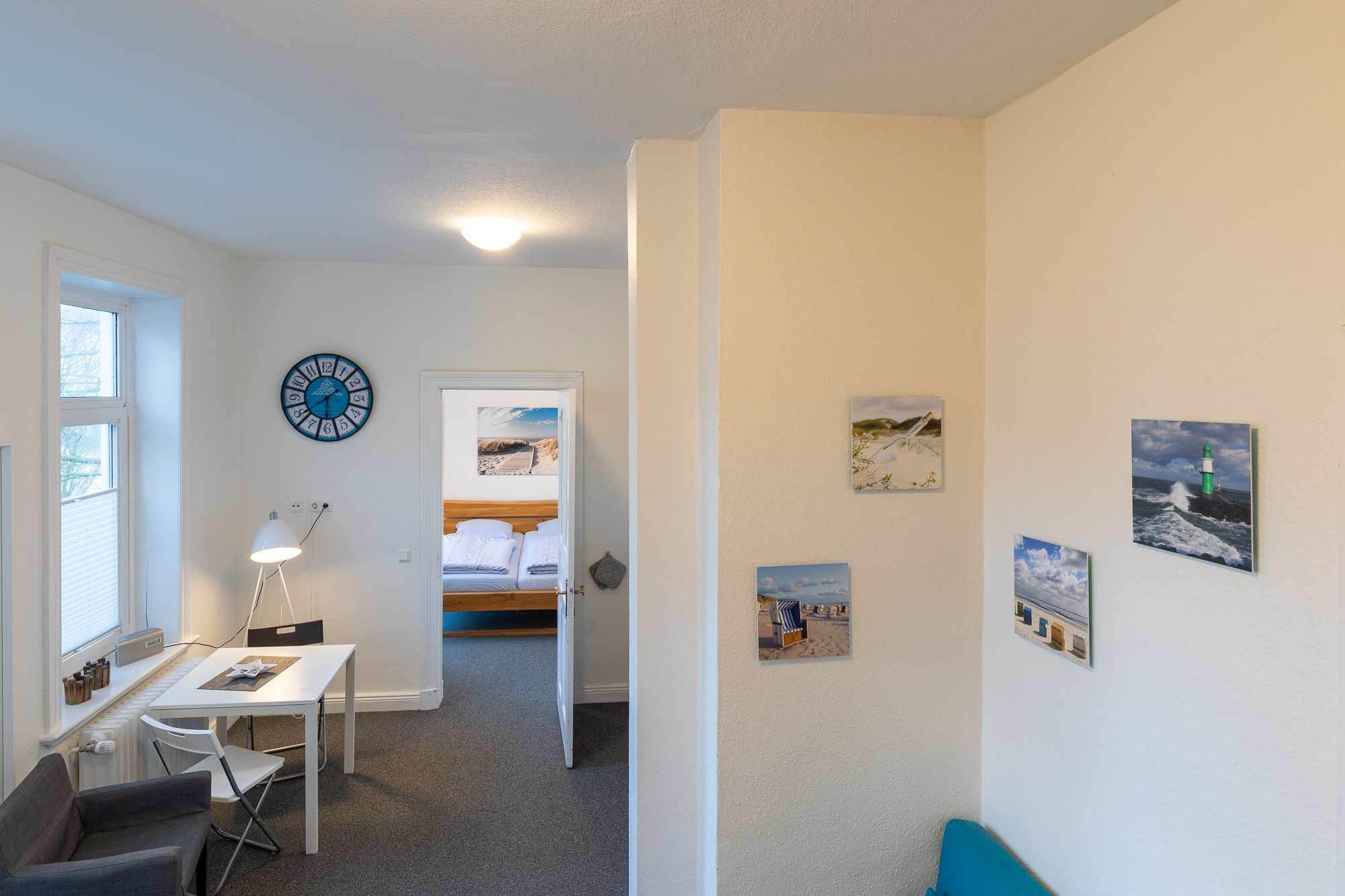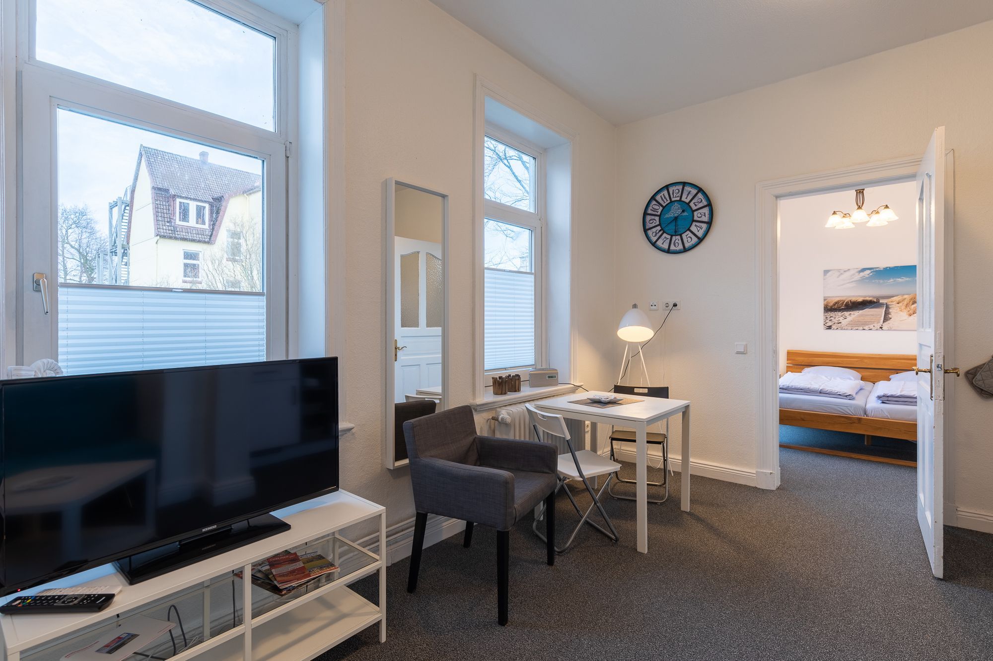Die Ferienwohnung 1 mit einer Größe von ca. 38 m² ist komplett bis zu 3 Personen ausgestattet. 1 Schlafzimmer mit Doppelbett, Kleiderschrank und Zugang zum Balkon, Wohnzimmer mit Einbauküche (Backofen, Cerankochfeld, Geschirrspüler, Kühlschrank), Essecke, Sofa und Zugang (Treppe) zum 2. Schlafzimmer mit einem Einzelbett, 1xDusche mit WC, 1 Flatscreen TV im Wohnzimmer, Nichtraucherwohnung, keine Haustiere, der PKW-Stellplatz kann am Strichweg, vor dem Haus, geparkt werden.
