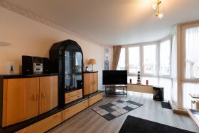 Ferienwohnung mit einer Größe von ca. 70 m² Wohnfläche ist komplett bis zu 4 Personen ausgestattet. 1 Schlafzimmer mit Doppelbett, Kleiderschrank, TV und Zugang zum Balkon, 1 Schlafzimmer mit Kleiderschrank und einem Bett (1,40mx2,00m), großes Wohnzimmer mit kompletter Einbauküche (Backofen, Cerankochfeld, Dunstabzugshaube, Mikrowelle Geschirrspüler, Toaster, Wasserkocher, Eierkocher), Essplatz, gemütliche Sofa-Ecke, TV, Mini-Stereo Anlage und direktem Zugang zum Balkon, 1 Bad mit Dusche und separaten WC, Nichtraucherwohnung, keine Haustiere, PKW-Stellplatz direkt am Haus.