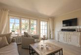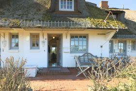 Das im friesischen Landhaus-Stil gehaltene Hausteil erstreckt sich über zwei Ebenen. Im Erdgeschoss lädt der hochwertig möblierte Wohnraum samt offener Küche zum Entspannen und gemütlichem Beisammensein ein. Highlight ist die Süd-West Terrasse mit ihrem herrlichen Ausblick in die naturgeschützte Heide. Ein kleines Gäste-WC befindet sich ebenfalls im Ergeschoss.