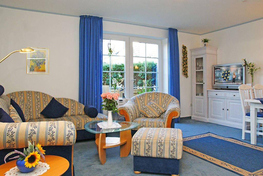 Die modern eingerichtete Ferienwohnung mit einer Größe von ca. 55 m² Wohnfläche ist komplett bis zu 3 Personen ausgestattet. 1 Schlafzimmer mit Doppelbett, 1 Schlafzimmer mit Einzelbett, großes Wohnzimmer mit Einbauküche (Cerankochfeld, Kühlschrank mit Gefrierfach, Wasserkocher, Toaster, Mikrowelle, Dunstabzugshaube), Essplatz, Sofa-Ecke und direktem Zugang zur Terrasse, 1xDusche mit WC, 2 Flatscreen TV (Wohnzimmer und im Schlafzimmer mit Doppelbett), Mini Stereoanlage, Nichtraucherhaus, keine Haustiere, PKW-Stellplatz direkt am Haus.