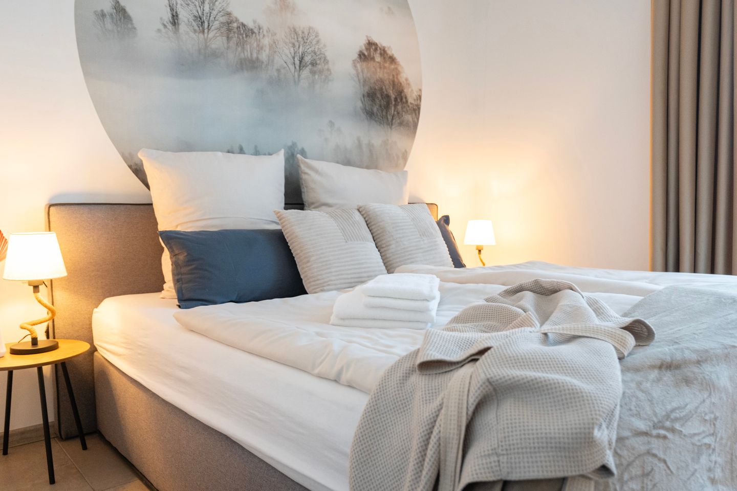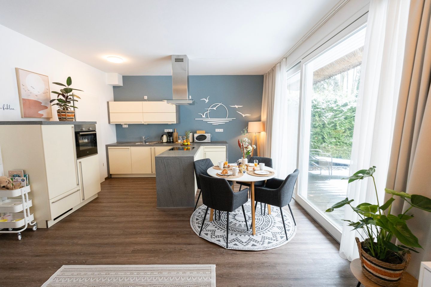 Willkommen in der Residenz am kleinen Meer, einer exklusiven Ferienanlage am Rande von Bad Zwischenahn. Unsere fünf reetgedeckten Häuser fügen sich harmonisch in die malerische Landschaft ein und umgeben einen privaten Natursee. Jedes Haus besteht aus drei stilvoll eingerichteten Wohneinheiten, die Platz für bis zu 6 Personen bieten. Genießen Sie modernsten Komfort, darunter Fußbodenheizung, hochwertige Boxspring-Betten, Sauna und kostenfreies WLAN. Die Anlage ist ideal für Familien, Paare und Gruppen, die Ruhe und Natur suchen.