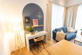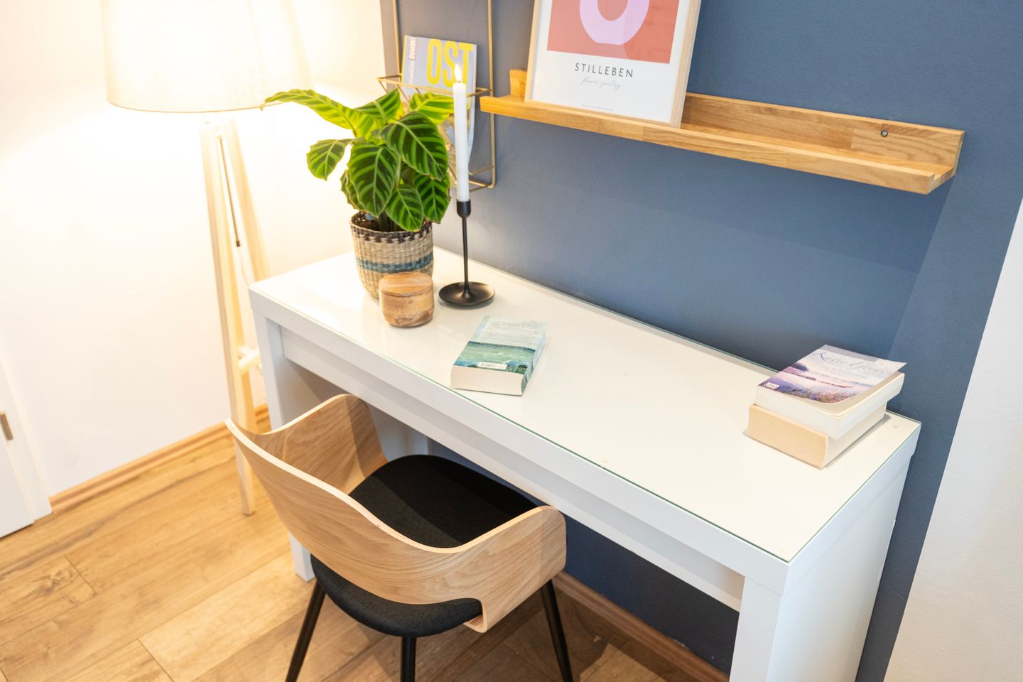 Das erste Schlafzimmer bietet ein gemütliches 1,80m Doppelbett. Im zweiten Schlafzimmer findest du ein bequemes queensize Bett. Im Wohnzimmer befindet sich ebenfalls noch eine Schlafcouch. Hier erlebst Du, ideal für Familienbesuche, einen großen und bequemen Sitzbereich mit Sofa und TV. Zusätzlich gibt es einen Arbeitsplatz mit Schreibtisch und schnellem Internet, perfekt für produktive Stunden oder als Homeoffice.