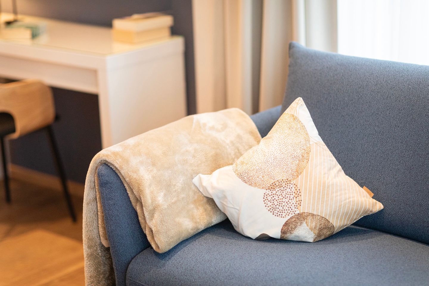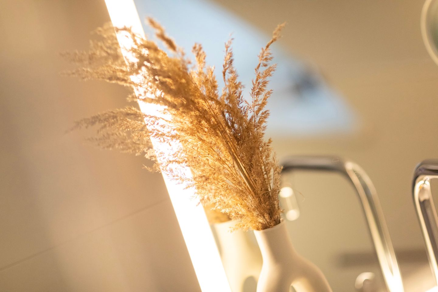 Beginne Deinen Tag mit leckerem Kaffee und genieße all die Annehmlichkeiten dieses Apartments, einschließlich der großen Terrasse mit exklusivem Seeblick, großzügigen Sitzbereichen für 6 Personen, einem Grill und Zugang zur Sauna auf der Anlage. Die Wohnung ist inspiriert vom Element Luft, was sich in einem ruhigen und erfrischenden Interior-Design widerspiegelt.