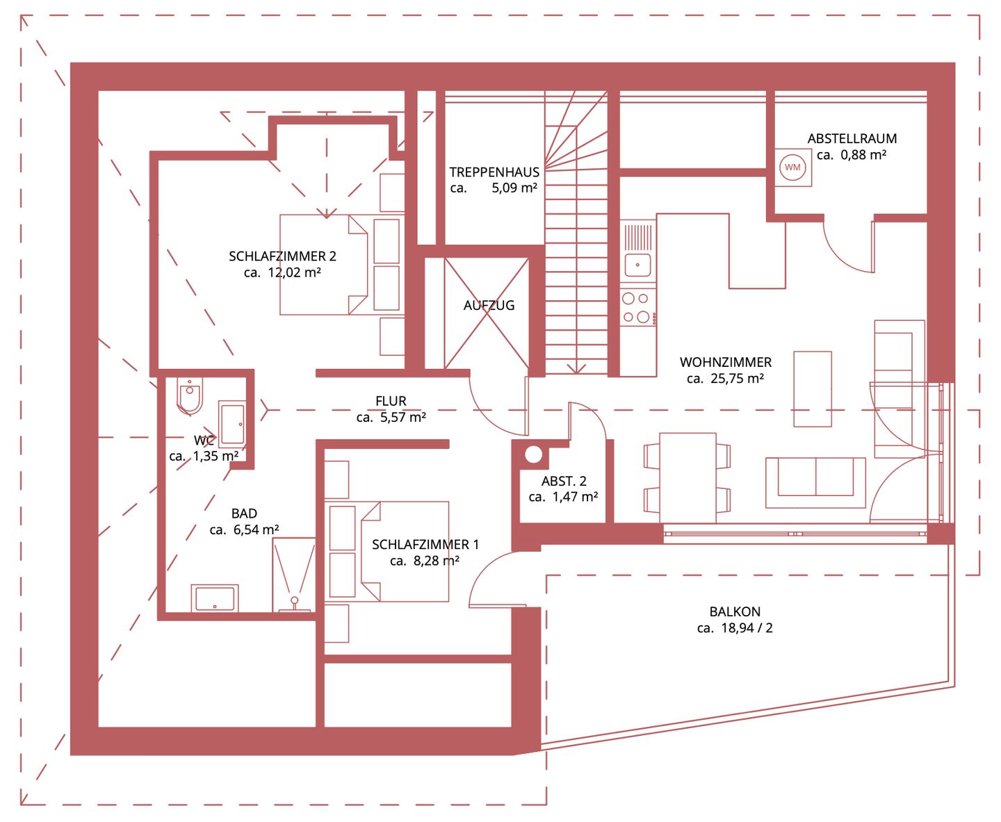 Mit dem Auto stehen Dir ausreichend Parkplätze direkt auf der Ferienanlage zur Verfügung. Dich erwartet ein 82 Quadratmeter großes Penthouse mit 1 Schlafzimmer, 1 Bad, Wohnzimmer und Küche.