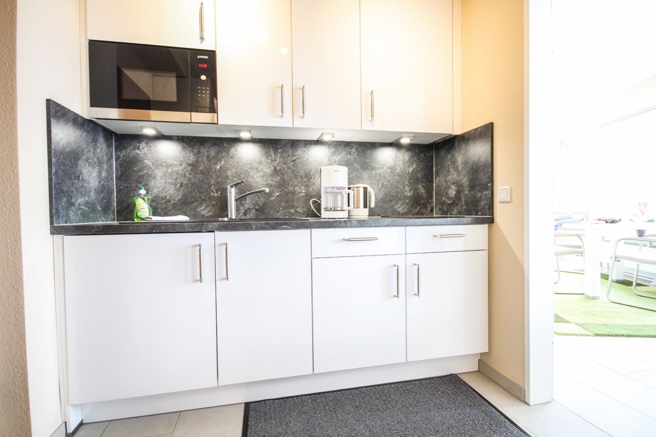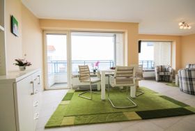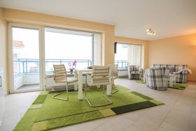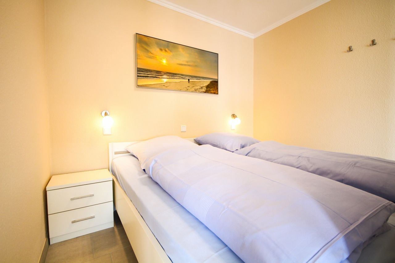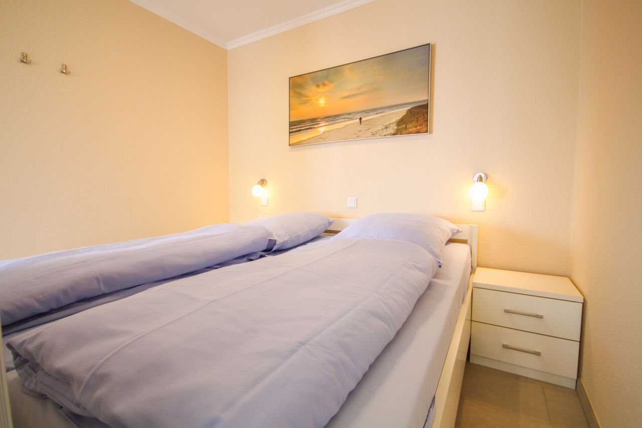 Die modern eingerichtete Ferienwohnung, in der 3. Etage, mit einer Größe von ca. 46 m² Wohnfläche ist komplett bis zu 2 Personen ausgestattet. 1 großes Wohnzimmer mit Essplatz, Sofa Ecke, Flatscreen TV, direkter Zugang zu den 2 Balkonen mit Blick zur Insel Neuwerk, abgetrennte Schlafnische mit 1 Doppelbett, Einbauküche (Cerankochfeld, Kaffeemaschine, Wasserkocher, Mikrowelle), 1xDusche (ebenerdig) mit WC, Nichtraucherwohnung, keine Haustiere.