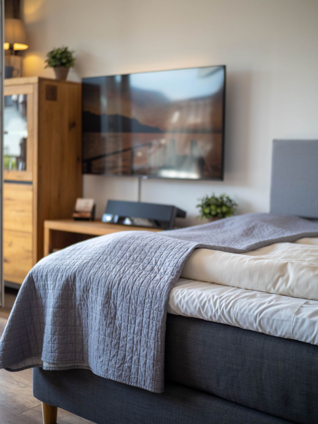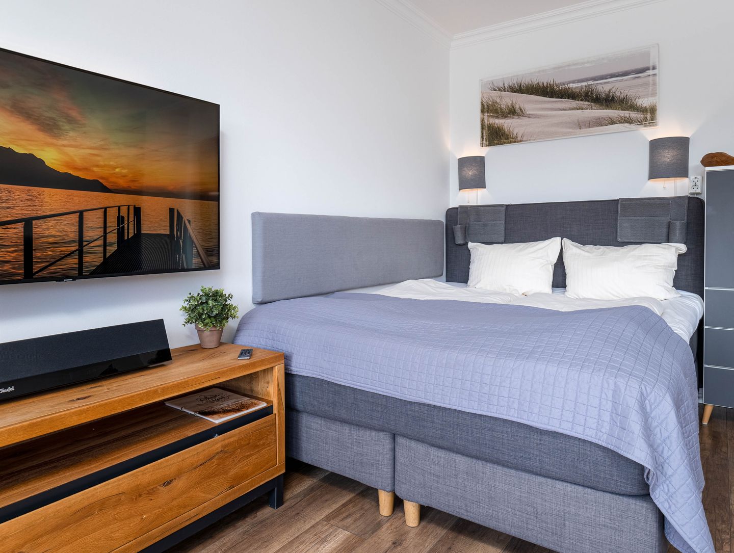 Moin Moin, und herzlich willkommen im Appartement Abendsonne. Diese charmante 1- Zimmer-Ferienwohnung liegt quasi mitten im Herzen von Sylt, in Wenningstedt, und das auch noch ganz zentral im Ort. Von hier aus ist es nur ein Katzensprung bis zu Feinkost Meyer oder zum Fahrradverleih, und sogar ein gut sortierter Shop für Hund und Herrchen/Frauchen im Erdgeschoss dieses familiären Appartementhauses, eine Apotheke und der Dorf-Arzt schräg gegenüber sind Ihre Nachbarn. Zum Weststrand und zum Kliff brauchen Sie zu Fuß keine zehn Minuten, zum idyllischen Dorfteich und der Norddörfer Kirche keine fünf. Die Wohnung ist neu und hochwertig eingerichtet, sie hat einen Süd-Balkon mit Strandkorb und ein gemütliches Boxspringbett. Zur modernen Ausstattung gehören außerdem Highspeed-Wlan, ein großer Smart-TV (mit TV-Apps wie netflix und Amazon prime) und eine bluetooth-fähige Stereo-Anlage.