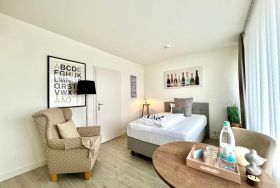 Moin Moin, das Appartement Maxi hat ein großes Herz für Alleinreisende. Maxi ist kompakte 23 Quadratmeter groß, liegt im zweiten Stock des Hauses in einer eher ruhigen Ecke von Westerland und doch sehr zentral, zum Strand und zum Shopping ist es nur ein Katzensprung. Die Ferienwohnung wurde vor Kurzem renoviert und mit einem Händchen für Wohlfühlatmosphäre neu ausgestattet. Wer hier urlaubt, freut sich außerdem über den kleinen Balkon, und ein eigener Parkplatz gehört auch noch dazu.
