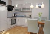 Die modern eingerichtete Ferienwohnung mit einer Größe von ca. 69 m² Wohnfläche ist komplett für bis zu 4 Personen ausgestattet. 1 Schlafzimmer mit Doppelbett und TV, 1 Schlafzimmer mit Schlafsofa, großes Wohnzimmer mit kompletter Einbauküche (Backofen, Cerankochfeld, Geschirrspüler, Toaster, Wasserkocher, Kaffeemaschine), Essplatz, gemütlichem Sofa und direktem Zugang zum Balkon und zur verglasten Loggia (die verglaste Loggia kann geöffnet werden), 1 Bad mit ebenerdiger Dusche, WC, Waschmaschine,2 Flatscreen TV (Wohnzimmer und im Schlafzimmer mit Doppelbett), Nichtraucherwohnung, keine Haustiere, reservierter überdachter PKW-Stellplatz (Carport) direkt am Haus.