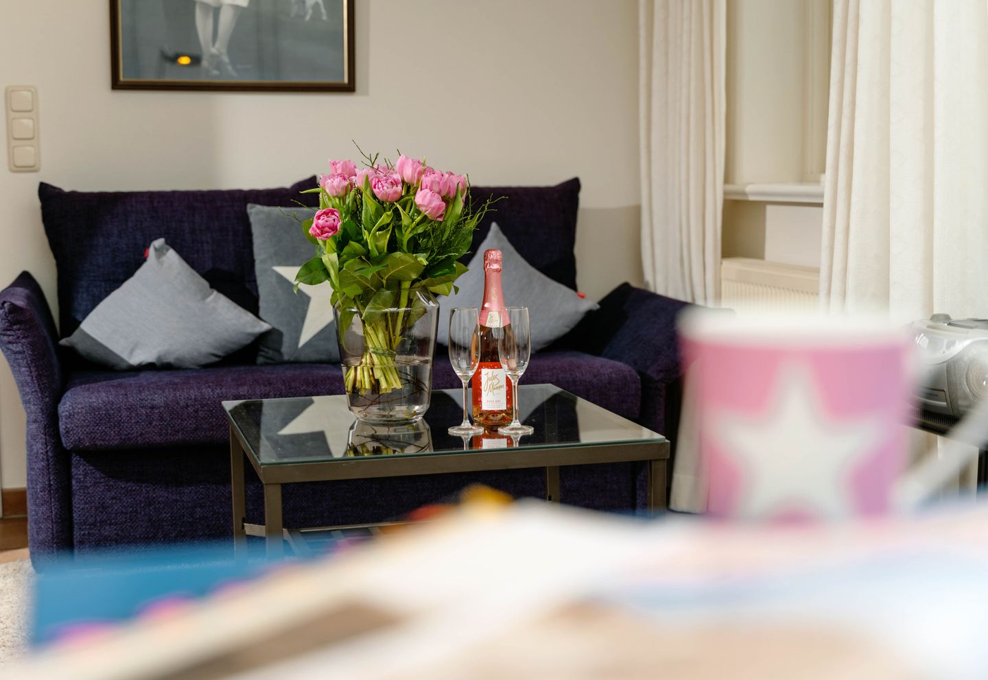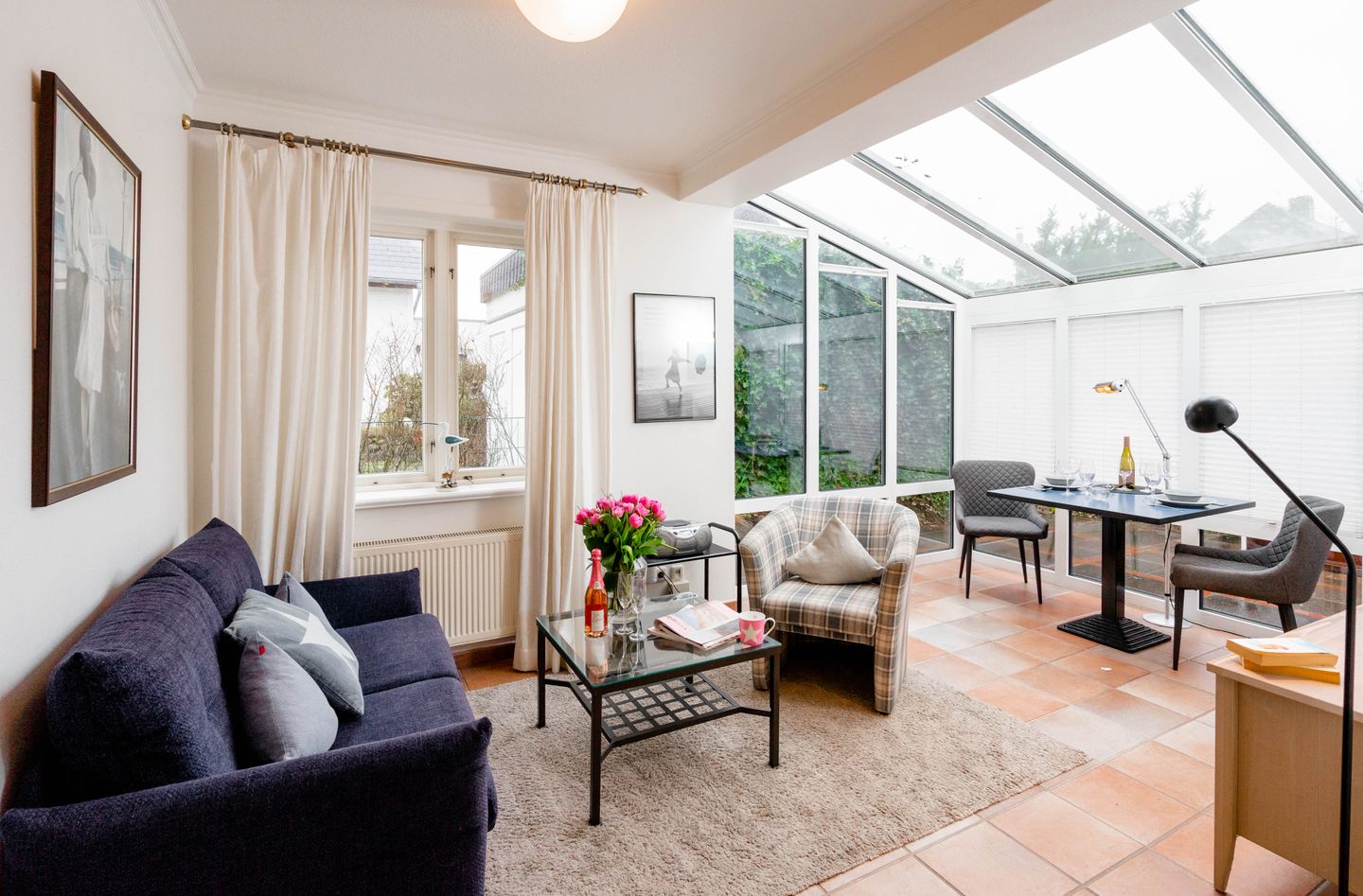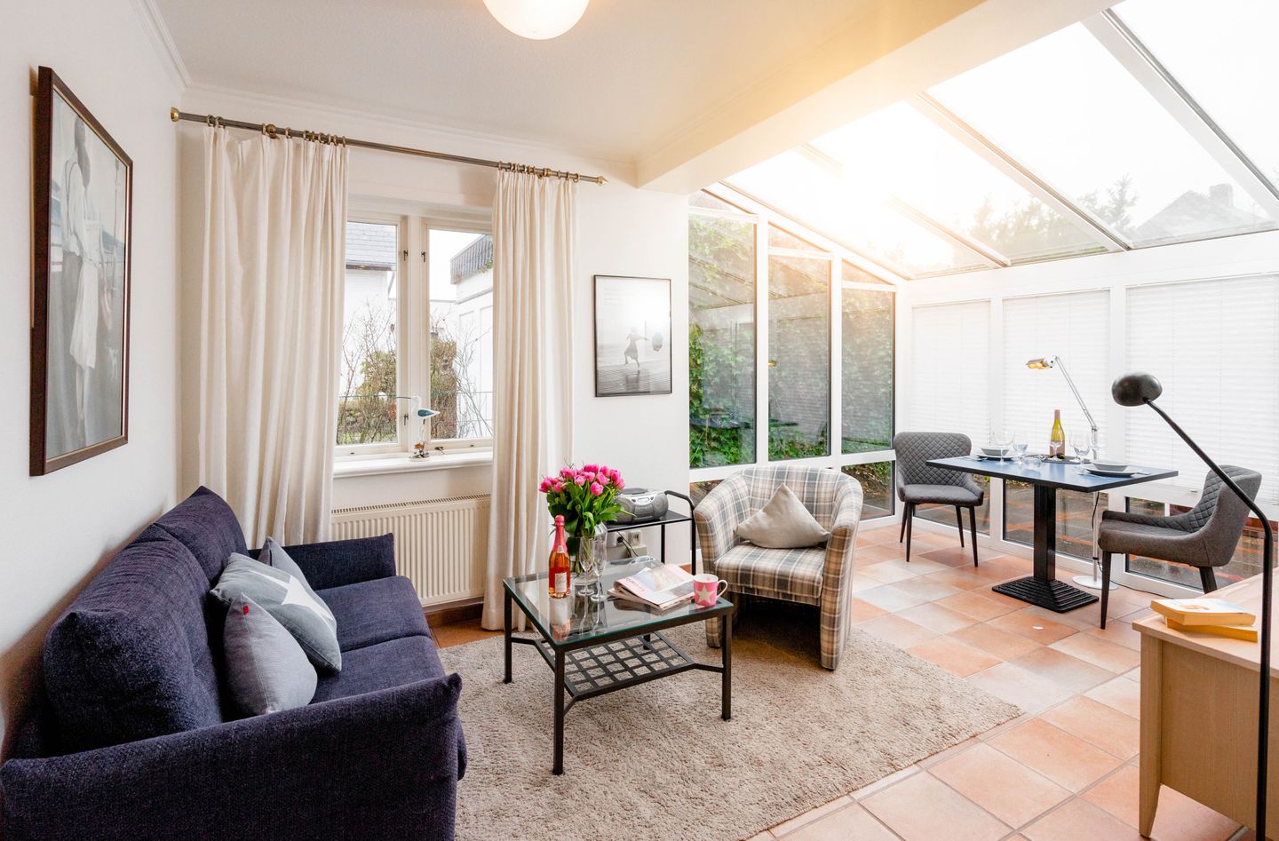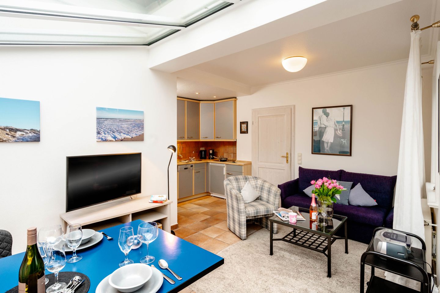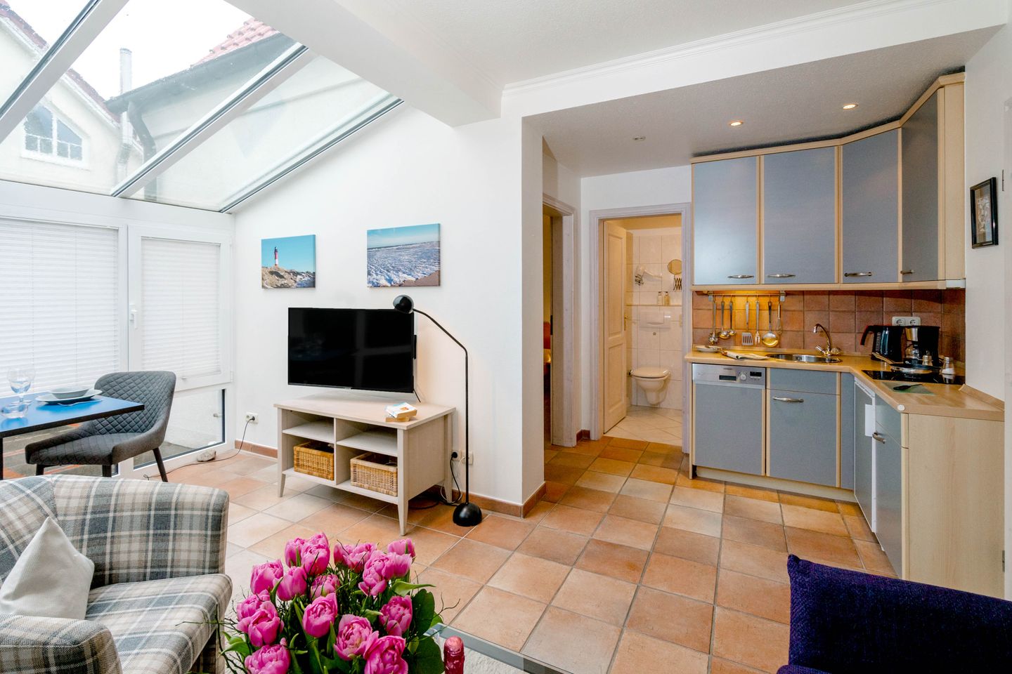 Moin, willkommen auf der Insel, heuern Sie doch mal bei unserem „Bootsmann“ an?! Die gleichnamige ebenerdige Westerländer 2-Zimmer-Ferienwohnung besticht mit viel Licht durch ihren attraktiven Wintergarten und durch ihre Lage in einer ruhigen Seitenstraße. Von hier aus sind es nur fünf Minuten zum Strandübergang „Friesische“, wie ihn die Einheimischen verknappt nennen. Auch die lebendige Innenstadt mit allen Shoppingmöglichkeiten und den großen Supermärkten ist von hier aus entspannt zu Fuß zu erreichen. Dieses Ferienappartement ist ungefähr 40 Quadratmeter groß und perfekt für zwei Personen, hat sogar eine Terrassen, eine friesisch blaue Wohnküche, sehr schönen Plavoizen-Boden und ein Schlafzimmer mit Doppelbett.