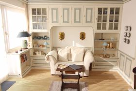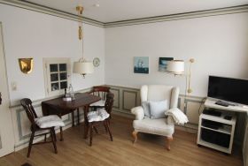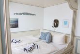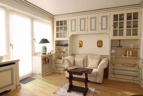 Moin und Willkommen in dieser charmanten 2- Zimmer-Ferienwohnung mit der Extraportion Sylt inklusive. Denn die Kleine Düne, so heißt dieses Appartement, hat es in sich: Überall finden sich exklusive und gut durchdachte Einbauten und Kassettenpaneele, wie sie so typisch sind für die traditionelle Handwerkskunst der friesischen Tischler, liebevoll von Hand bemalt in nordischem Blau-Weiß. Eine separate Küche mit praktischer Durchreiche, ein uriger Esstisch für vergnügte Runden, eine gemütliche Couch, geschickt gesetzte maritime Messingakzente und ein Schlafzimmer mit attraktivem Doppelbett in Alkovenart: Dieses 42 Quadratmeter große und ebenerdige Ferienappartement ist mit viel Freude am Datail eingerichtet, eine möblierte Süd-Terrasse und ein eigener Parkplatz gehören auch noch dazu. Die Westerländer Innenstadt und den Strand erreichen Sie von hier aus in einer knappen Viertelstunde zu Fuß, eine nahe Bushaltestelle gibt es auch, gleich um die Ecke.
