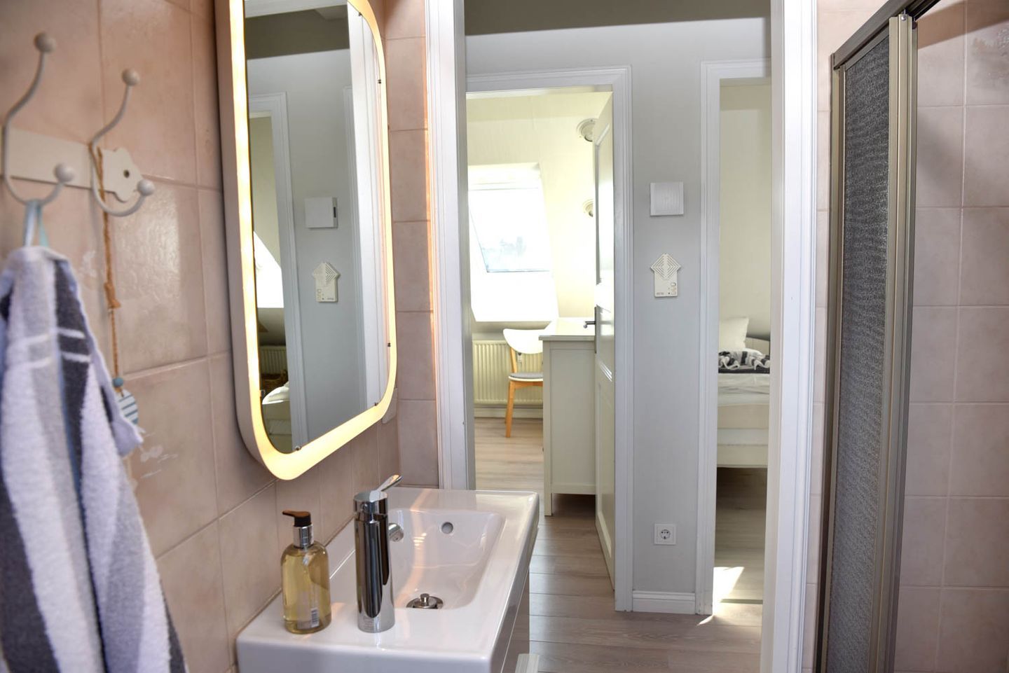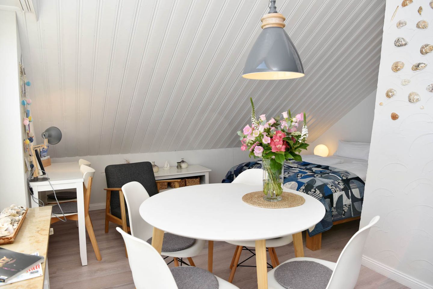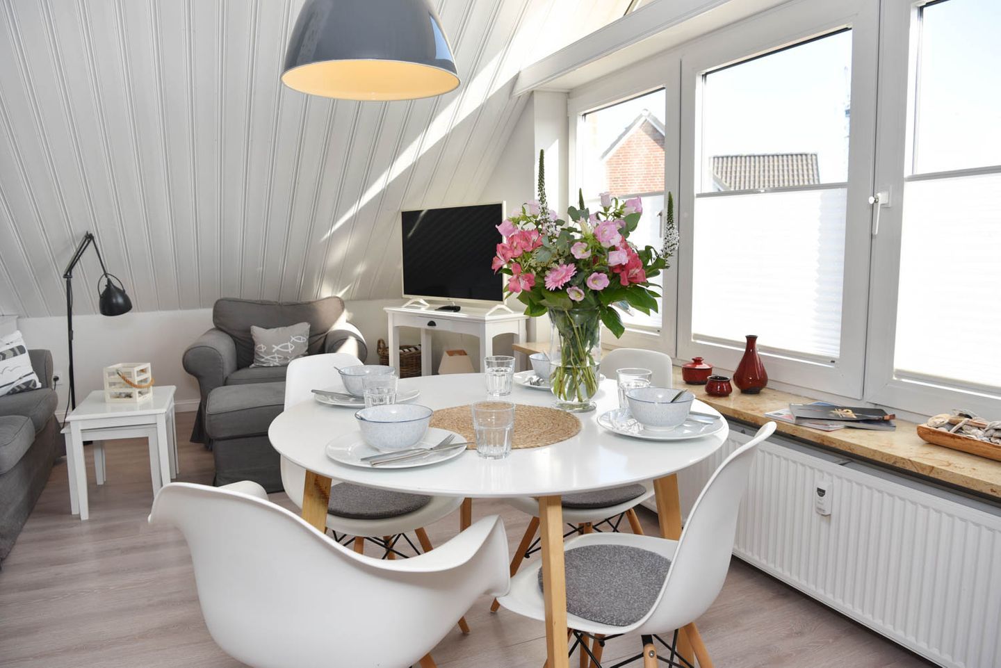 Moin Moin und Willkommen im Appartement Herzmuschel in Hörnum. Auf knapp 50 Quadratmetern bietet diese 3-Zimmer-Ferienwohnung Platz für bis zu fünf Personen. Sie befindet sich im zweiten Stock eines Hauses mit mehreren Wohnungen. Ein Kinderspielplatz ist nicht weit weg. Und das Beste an dieser sehr ruhigen Lage ist: Der Weststrand wie der Oststrand und der Hafen von Hörnum sind in wenigen Minuten zu Fuß zu erreichen.