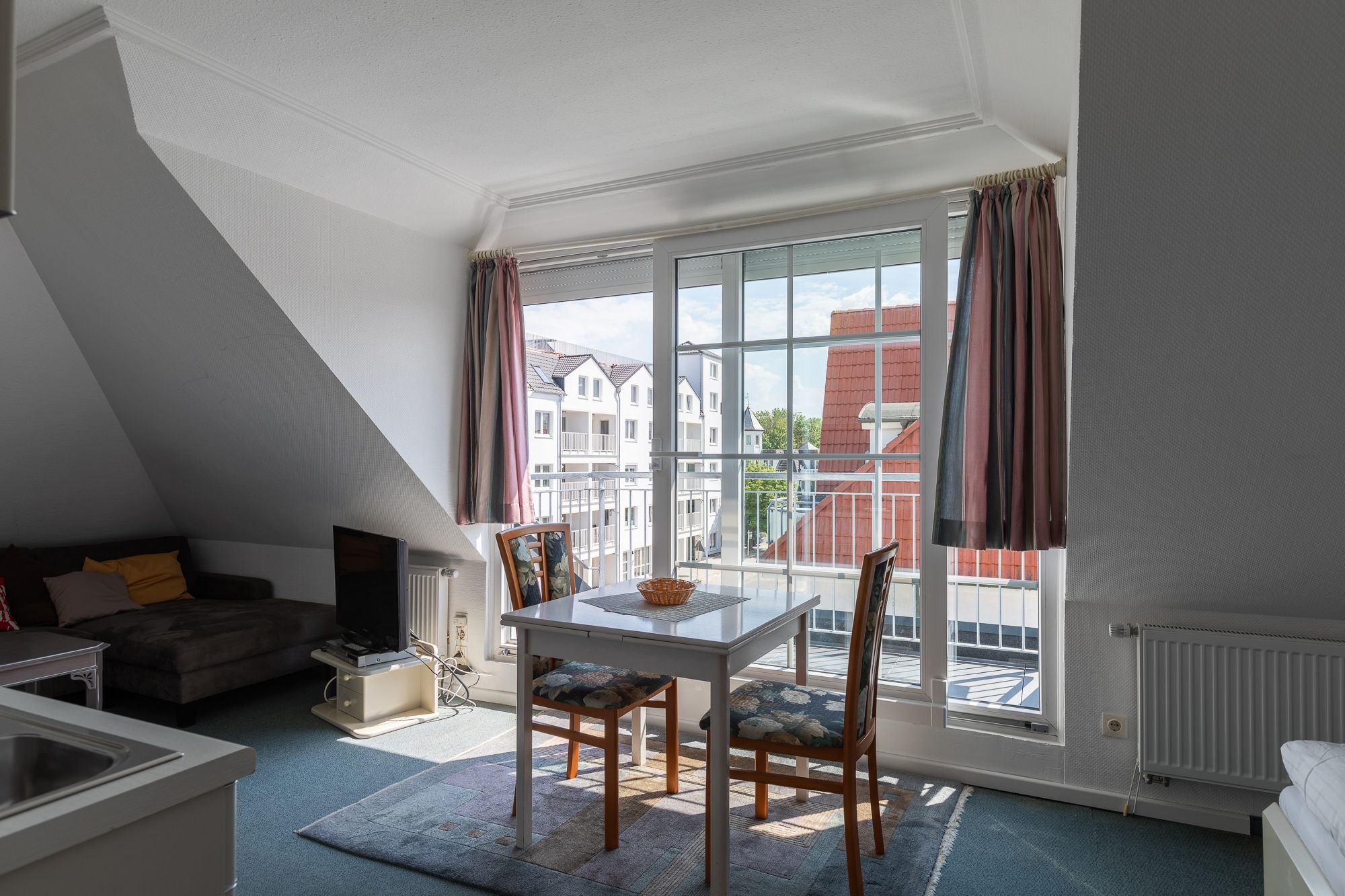 Die Studio Ferienwohnung mit einer Größe von ca. 28 m² Wohnfläche ist komplett bis zu 2 Personen ausgestattet. 1 Wohnzimmer mit ausgebauten Erker (das Wohnzimmer kann über den elektrischen Aussenrollladen verdunkelt werden), Balkon, Essplatz, Doppelbett (180x200), 1 Flachbildfernseher, Sofa, Küche mit Mikrowelle, Kühlschrank, 4 Platten Kochfeld, Kaffeemaschine, Wasserkocher und Toaster, Flur mit Garderobe, Bad mit Fenster, Dusche, WC, BD, Nichtraucherwohnung, keine Haustiere, PKW-Stellplatz in unmittelbarer Nähe vom Haus.