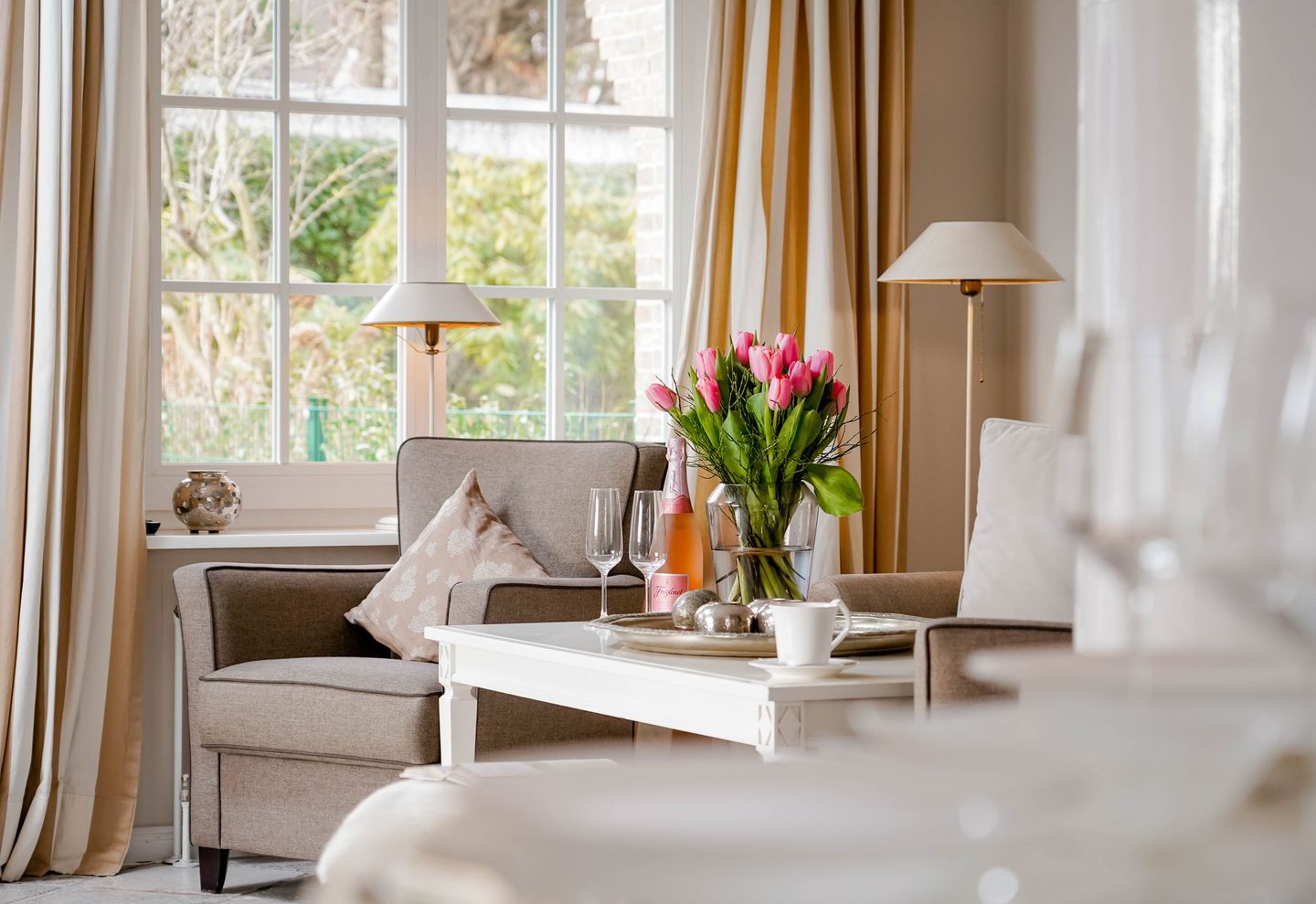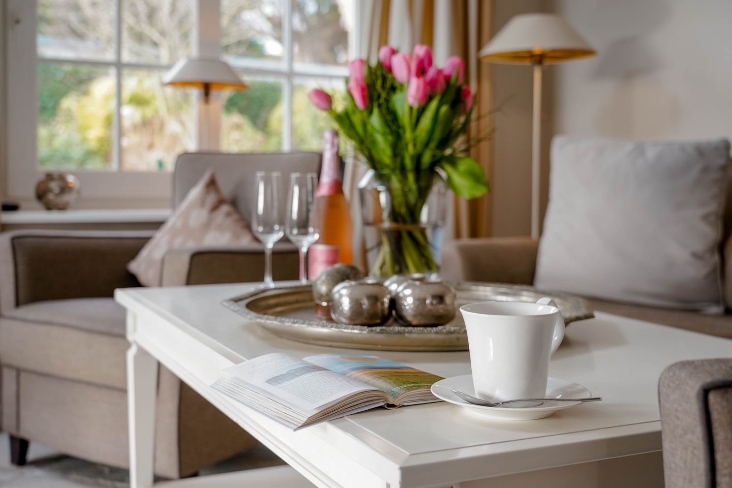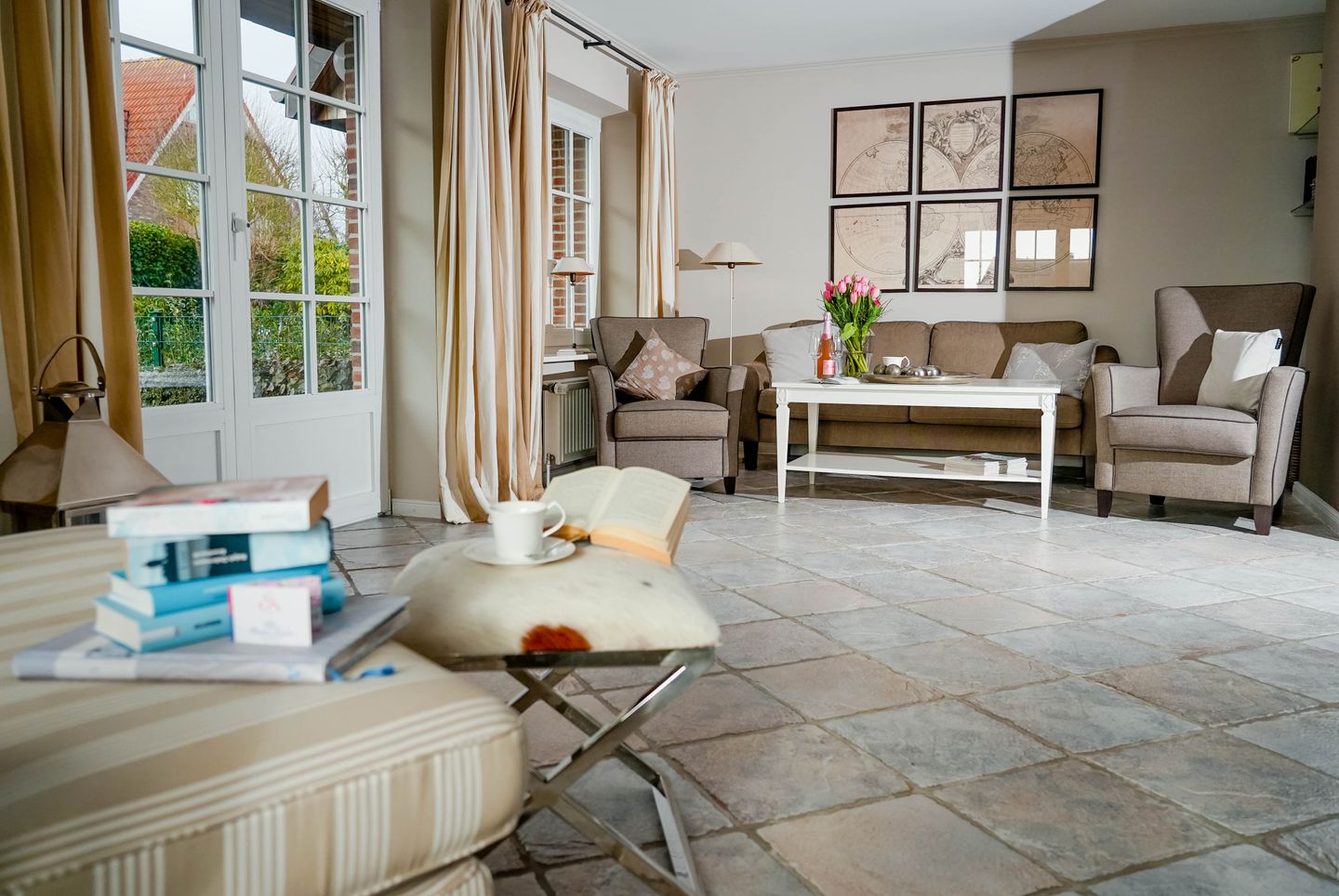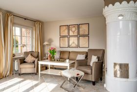 Moin, moin, willkommen in „Ekke 2“ wie wir diese Ferienwohnung kurz und knapp nennen. Sie verdankt ihren Namen dem Inselkobold „Ekke Nekkepenn“, einer Art nordfriesischem Rumpelstilzchen, das in Sylter Sagen herumpoltert. „Ekke 2“, gelegen in einem sylttypischen Doppelhaus, passt also sagenhaft perfekt mit ganzen fünf Räumen für bis zu vier Erwachsene. Star des großzügigen Wohn-Essbereichs mit offener Landhausküche ganz in Weiß ist sicherlich der wunderschöne und über 100 Jahre alte „Mylin“-Kachelofen. Die luxuriöse Ferienwohnung erstreckt sich über ein Erd- und ein Warftgeschoss, was für erholsamen und ungestörten Schlaf sorgt, nicht zuletzt auch wegen der hochwertigen Boxspringdoppelbetten in den zwei Schlafzimmern mit attraktiven Eichendielen und durchdachten Einbauten.