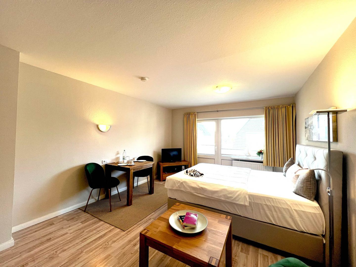 Moin und herzlich willkommen in der Ferienwohnung „Mare Nostrum 6“. Diese gemütliche Ein-Zimmer-Ferienwohnung ist Zuhause im ersten Obergeschoss eines überschaubaren Appartementhauses in unmittelbarer Strandnähe, hinter den Dünen von Westerland. Sie hat für zwei mit 36 Quadratmetern die perfekte Größe. Die offene Wohnküche (Farbton „Vanille“) ist gut ausgestattet, ein eigener Balkon, ein Parkplatz extra für Sie in der Tiefgarage und Waschmaschine/Trockner zur Gemeinschaftsnutzung stehen ebenfalls zur Verfügung. Der Clou an dem Appartementhaus, in dem Sie hier wohnen, ist seine Lage: Keine zehn Minuten sind es vor hier in die lebendige Innenstadt mit allen Einkaufsmöglichkeiten, urigen Kneipen und attraktiven Restaurants. Und wer gerne vorm Frühstück im Meer schwimmt, kann theoretisch in der Badehose „eben rüber laufen“ zum Strand, der ist nämlich keine zwei Minuten weit weg.