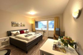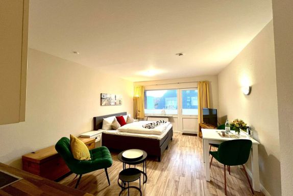 Moin und herzlich willkommen in der Ferienwohnung „Mare Nostrum 7“. Diese gemütliche Ein-Zimmer-Ferienwohnung ist Zuhause im ersten Obergeschoss eines überschaubaren Appartementhauses in unmittelbarer Strandnähe, hinter den Dünen von Westerland. Sie hat für zwei mit 36 Quadratmetern die perfekte Größe. Die offene Wohnküche (Farbton „Vanille“) ist gut ausgestattet, der Balkon im Sommer möbliert, ein eigener Parkplatz und Waschmaschine/Trockner zur Gemeinschaftsnutzung stehen ebenfalls zur Verfügung. Der Clou an dem Appartementhaus, in dem Sie hier wohnen, ist seine Lage: Keine zehn Minuten sind es zu Fuß von hier in die lebendige Innenstadt mit allen Einkaufsmöglichkeiten, urigen Kneipen und attraktiven Restaurants.