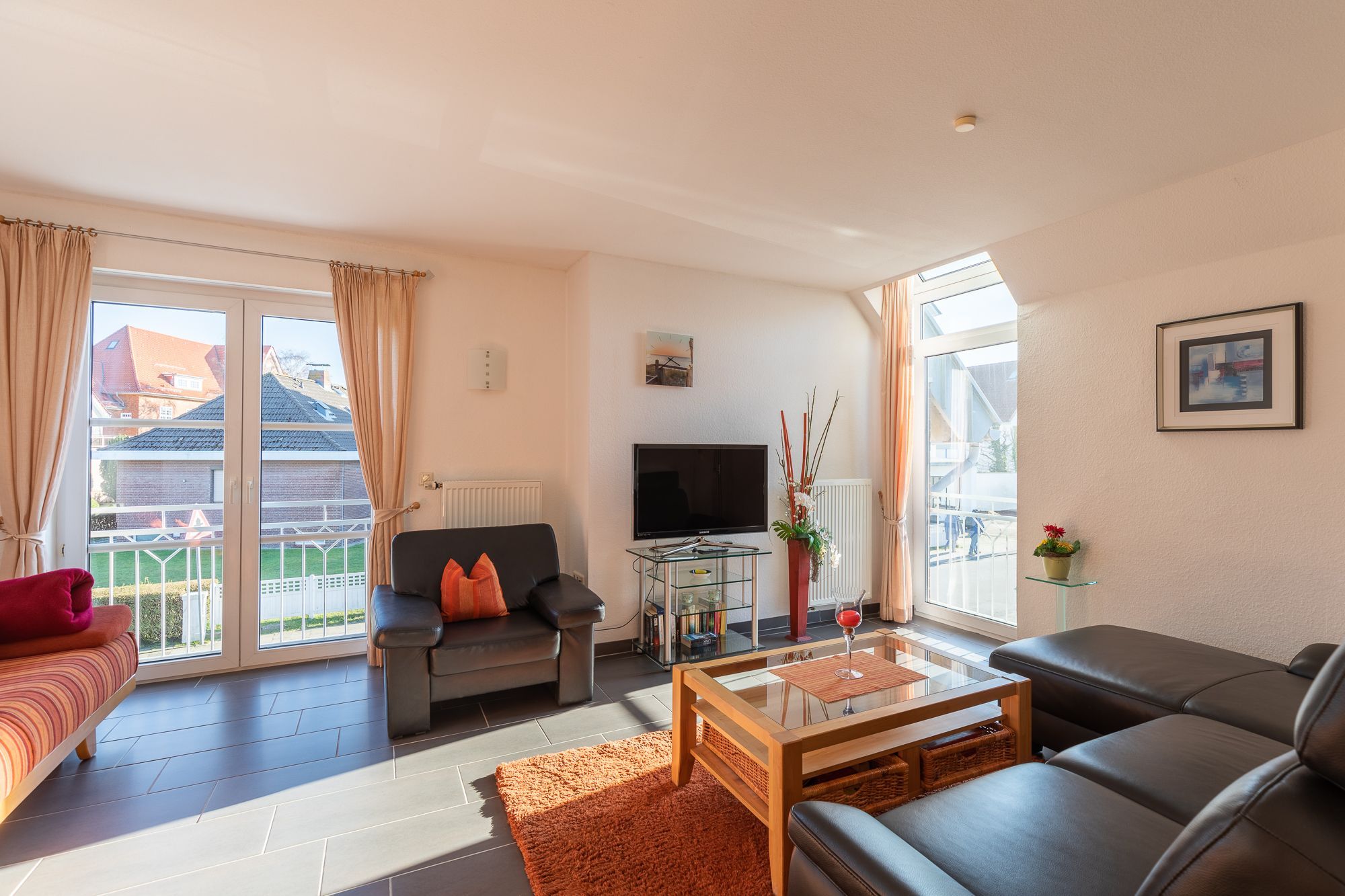 Urlaub, ideal für bis zu 4 Personen, das Haus Seewind mit der Wohnung 4, im 1. Obergeschoss, liegt direkt im Zentrum von Cuxhaven Duhnen und ist nur wenige Gehminuten vom Sandstrand und der Strand Promenade, mit seinen Geschäften und Restaurants entfernt.
