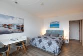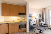 Die Ferienwohnung mit einer Größe von ca. 35 m² Wohnfläche ist bis zu 2 Personen ausgestattet. 1 Wohnzimmer mit 2 Relax Sessel, Küchenzeile (Cerankochfeld, Backofen, Dunstabzugshaube, Kühlschrank, Wasserkocher, Kaffeemaschine, Nespresso Maschine, Toaster), Esstisch mit 2 Stühlen, direktem Zugang zum Balkon, 1 Doppelbett (160cm x 200cm) mit zwei Einzelmatratzen (80cm x 200cm), Bad mit WC und Dusche, Nichtraucherwohnung, PKW-Stellplatz direkt am Haus.