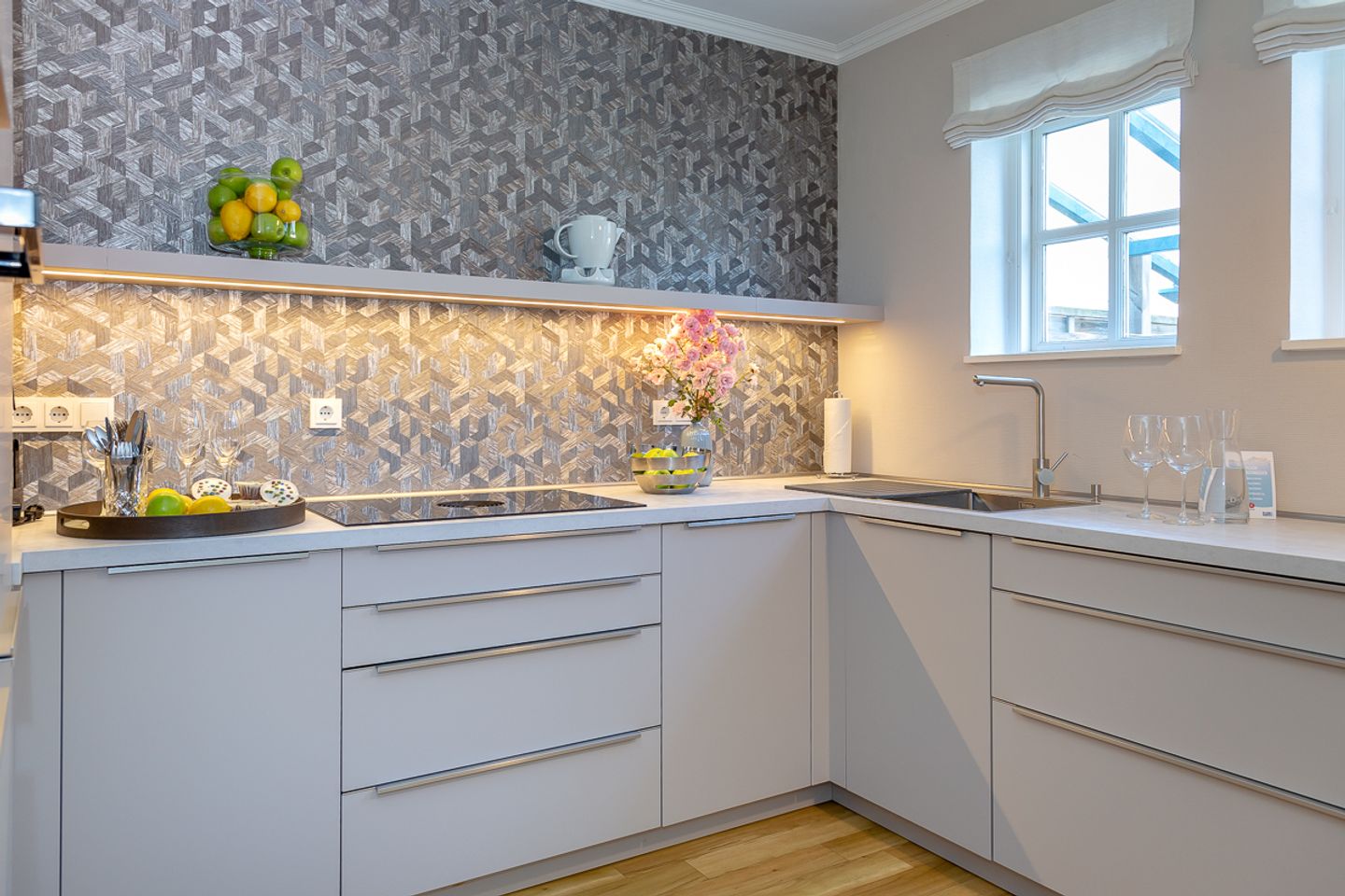 Die moderne, bestens ausgestattete Küche macht die Selbstversorgung zum Vergnügen und lädt am großen Esstisch zu geselligen Mahlzeiten ein.
