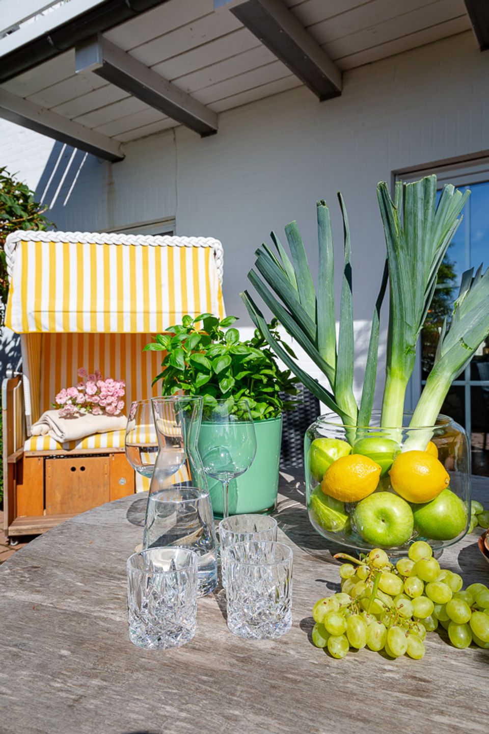 Das sorgfältig ausgewählte, hochwertige Interieur vom renommierten Sylter Einrichtungshaus Homestories verbindet edle Eleganz mit gemütlicher Atmosphäre. Verbringen Sie erholsame Stunden im großzügigen Wohnbereich oder genießen Sie entspannte Sonnenmomente auf der privaten Terrasse mit komfortablen Gartenmöbeln und einem einladenden Strandkorb – ideal, um den Blick über die ruhigen Tinnumer Wiesen schweifen zu lassen.