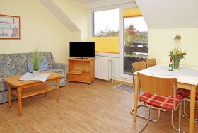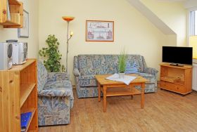 Apart 2 ist eine geschmackvoll eingerichtete Ferienwohnung mit einer Größe von ca. 58 m² Wohnfläche und komplett bis zu 4 Personen ausgestattet. Wohnzimmer mit Sofa und Sessel, Essecke, TV, Stereoanlage, Zugang zum Balkon, 1 Schlafzimmer mit Doppelbett und Zugang zum Kinderzimmer mit 2 Einzelbetten, Küche mit 4 Plattenherd, Backofen, Geschirrspüler, Toaster, Kaffeemaschine, Wasserkocher, Kühlschrank mit Gefrierfach, Bad mit Dusche, Badewanne, WC, Waschbecken, Wickeltisch, Nichtraucherhaus, keine Haustiere, kostenloser PKW-Stellplatz direkt am Haus.