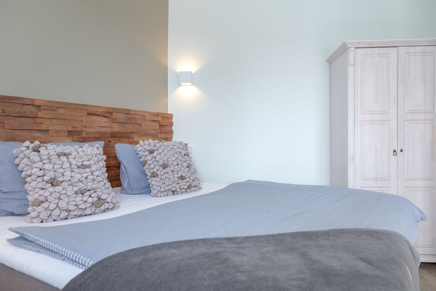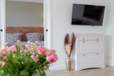 Zudem bieten Schränke im Vintage-Look genügend Platz für Ihre Garderobe. Die gekonnt abgestimmte Einrichtung lässt Sie sich nach einem ereignisreichen Tag wie zu Hause fühlen.