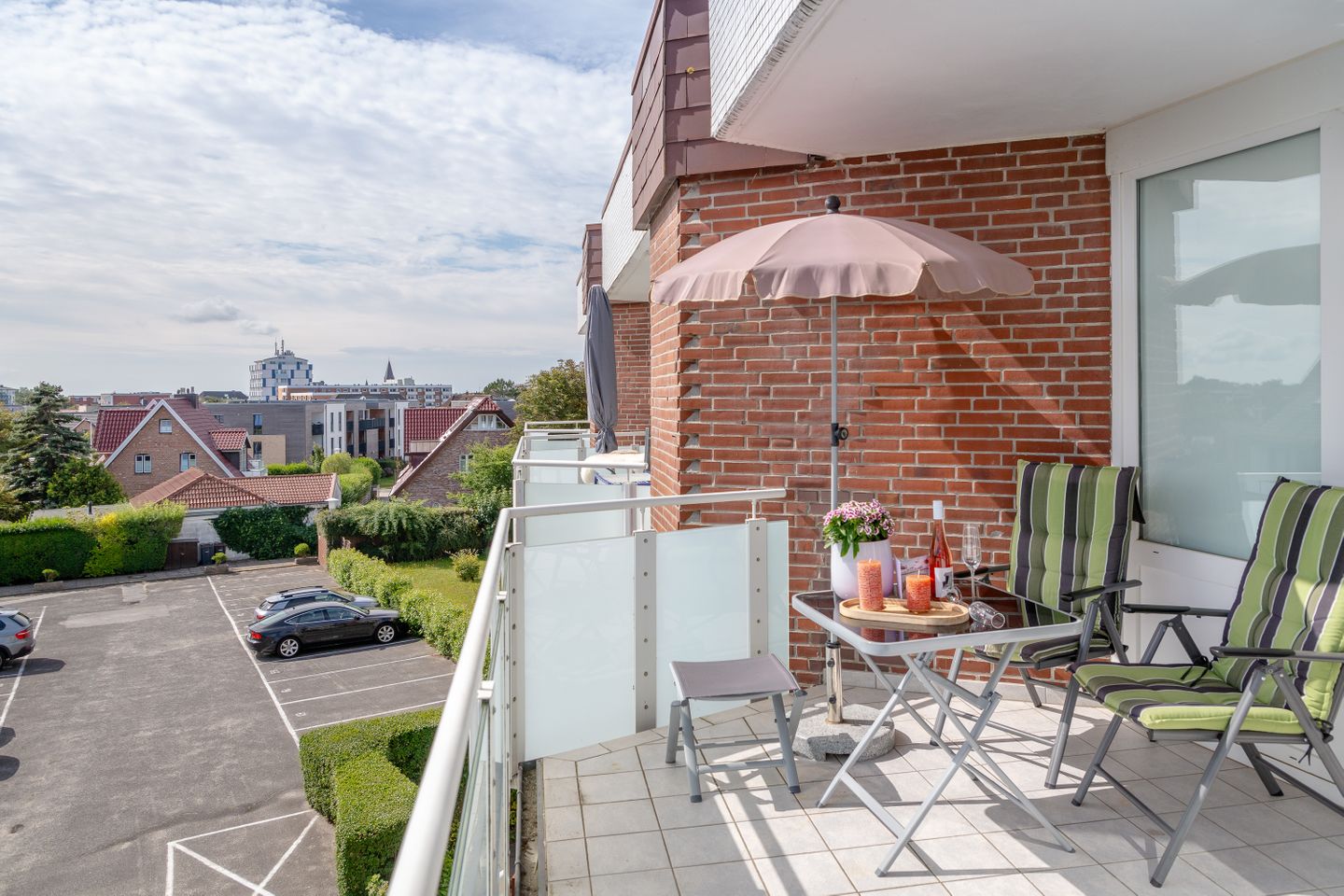 Vom Wohnbereich aus gelangen Sie auf den großzügigen Balkon, welcher nach Süd-Osten ausgerichtet ist. Hier können Sie die Sonne genießen und sich angenehm entspannen, während Sie den Blick über die Stadt schweifen lassen. Die separate Küche bietet Ihnen alles, was Sie für die mühelose Selbstversorgung im Urlaub benötigen und was Ihnen das Kochen zusätzlich erleichtert. Das helle Badezimmer verfügt über eine geräumige Dusche.