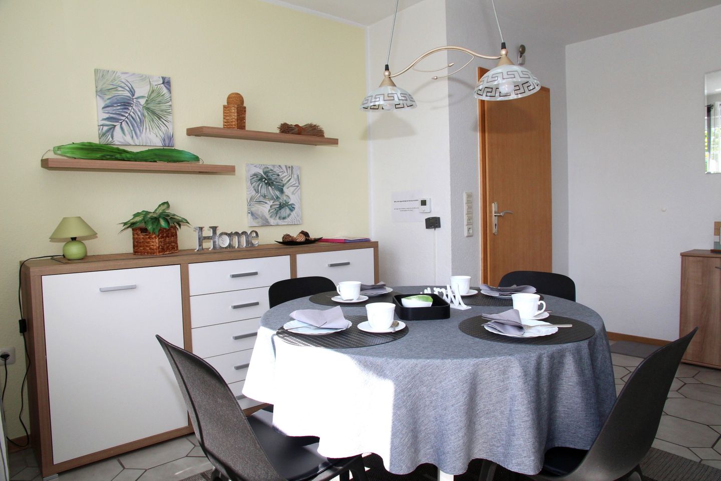 Der moderne Wohn-/Essbereich mit gemütlicher Couch und großem TV, sowie einer Musikanlage lädt zum Entspannen ein. Eine Küche mit kompletter Ausstattung (z.B. Mikrowelle, Gefrierfach, Kaffeemaschine u.v.m., aber ohne Geschirrspüler), sowie ein runder Esstisch für 4 Personen stehen Ihnen zur Verfügung.