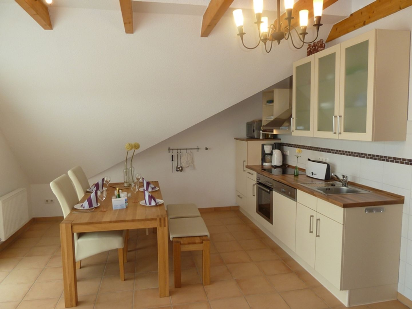 Die Allergiker-freundliche Ferienwohnung ist sehr geschmackvoll und hochwertig ausgestattet. Der Fußboden ist im Wohn- Essbereich, Flur und Bad komplett gefliest und verfügt über eine angenehme Fußbodenerwärmung.