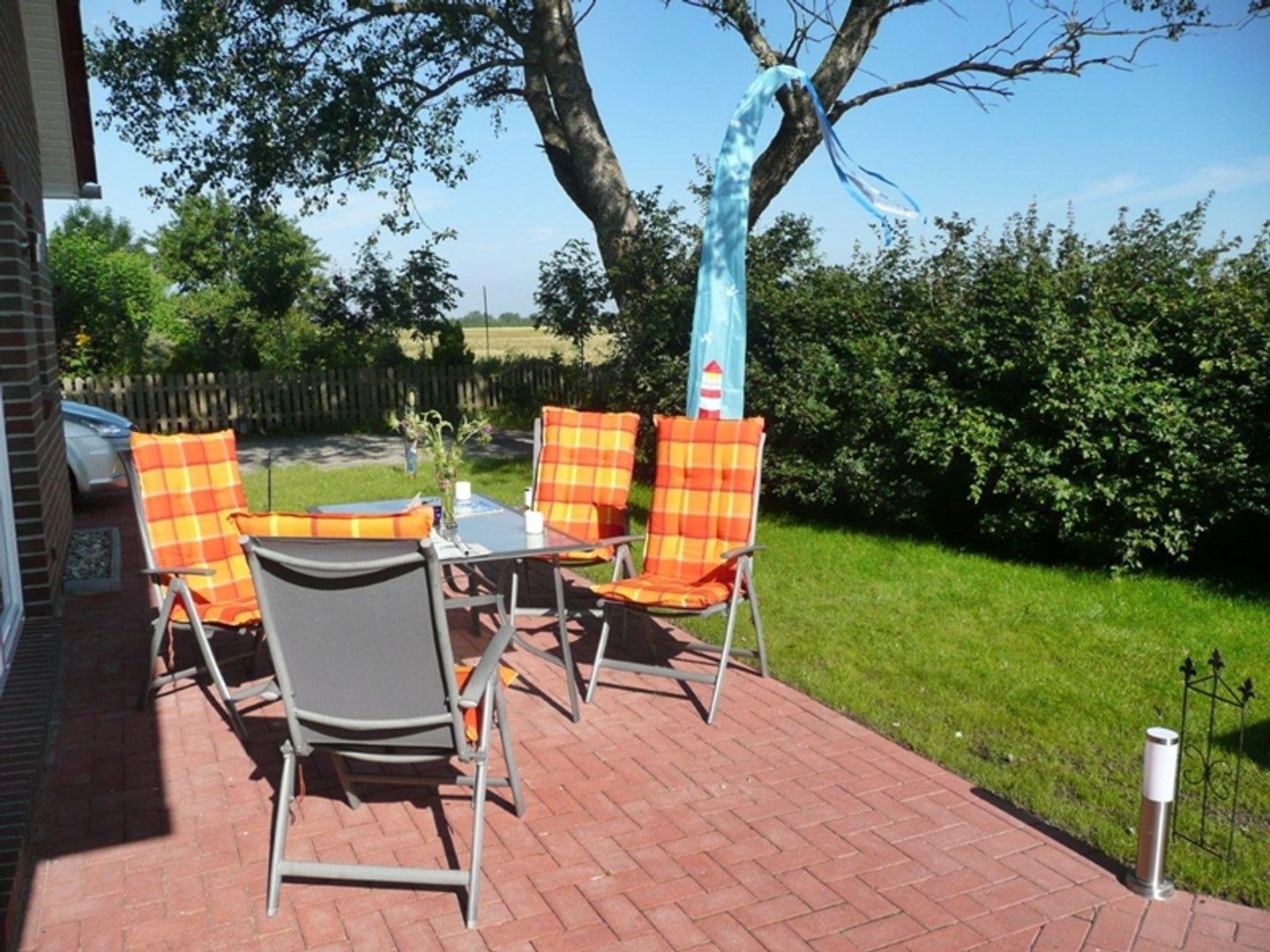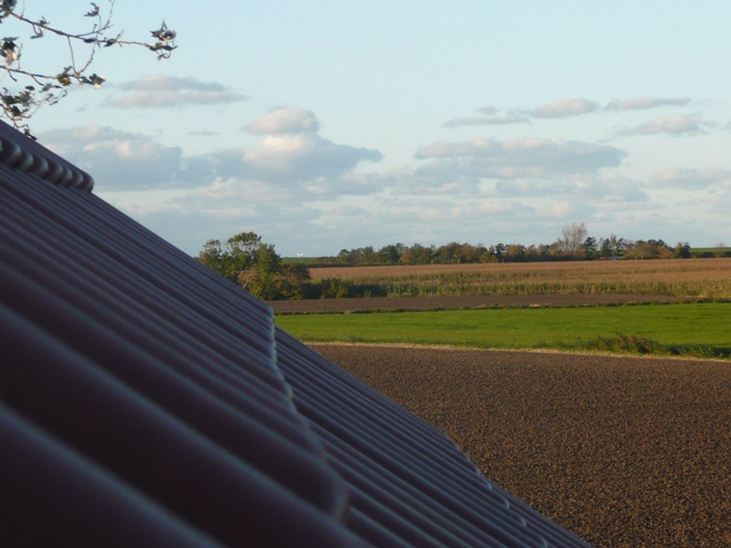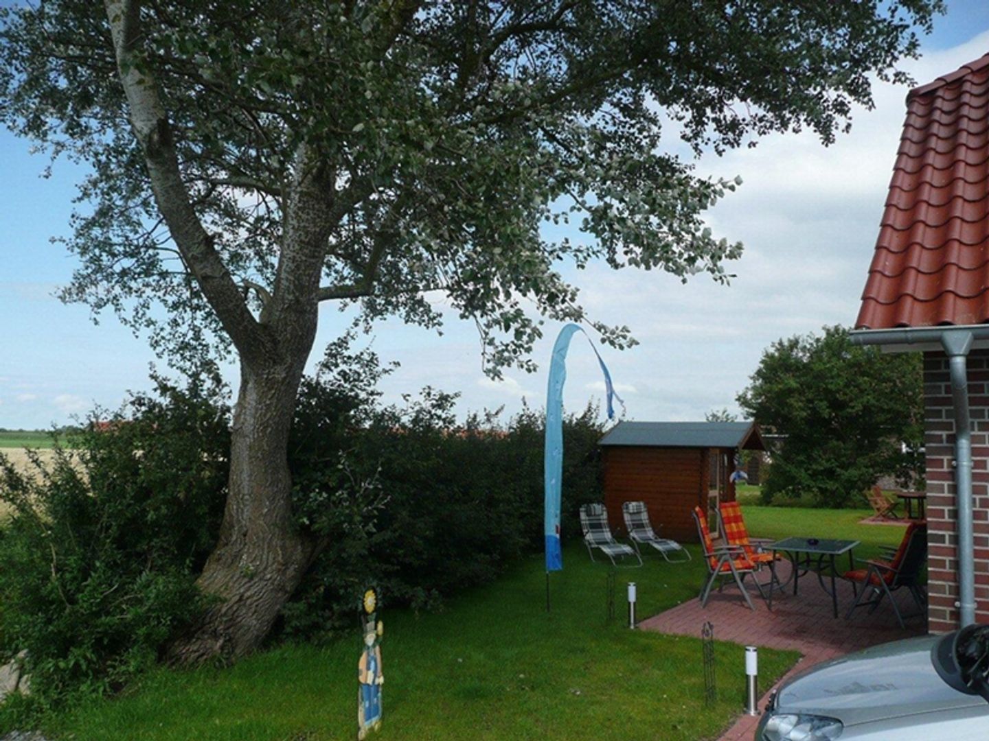 Von der Terrasse aus haben Sie freien Blick über die Wiesen und Felder bis hin zum Deich.
