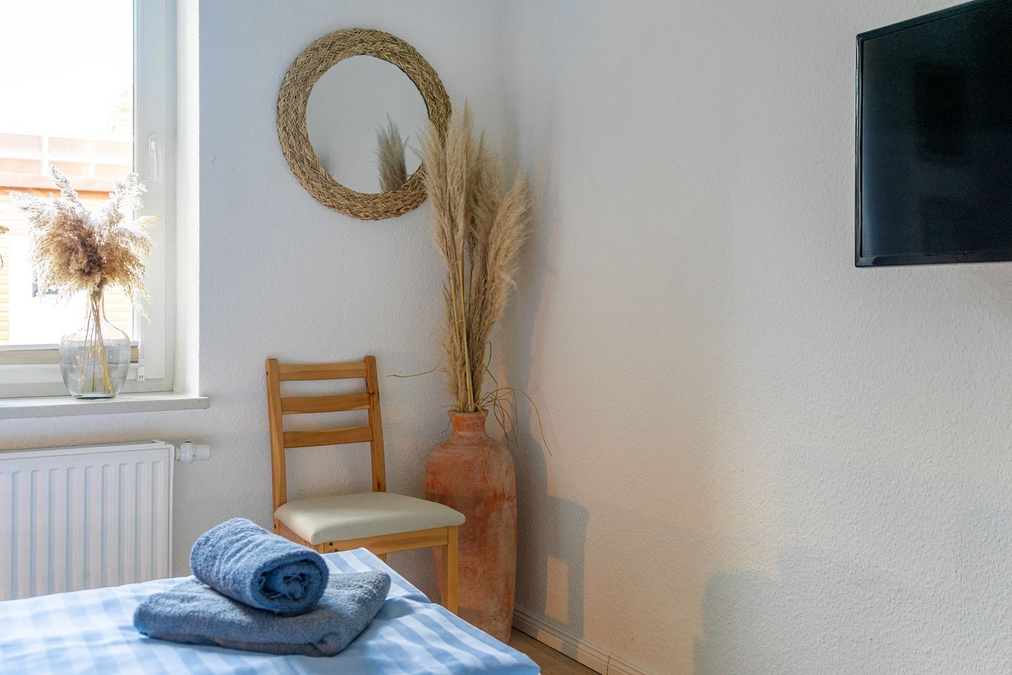 Alle Fenster sind mit Plissees ausgestattet.