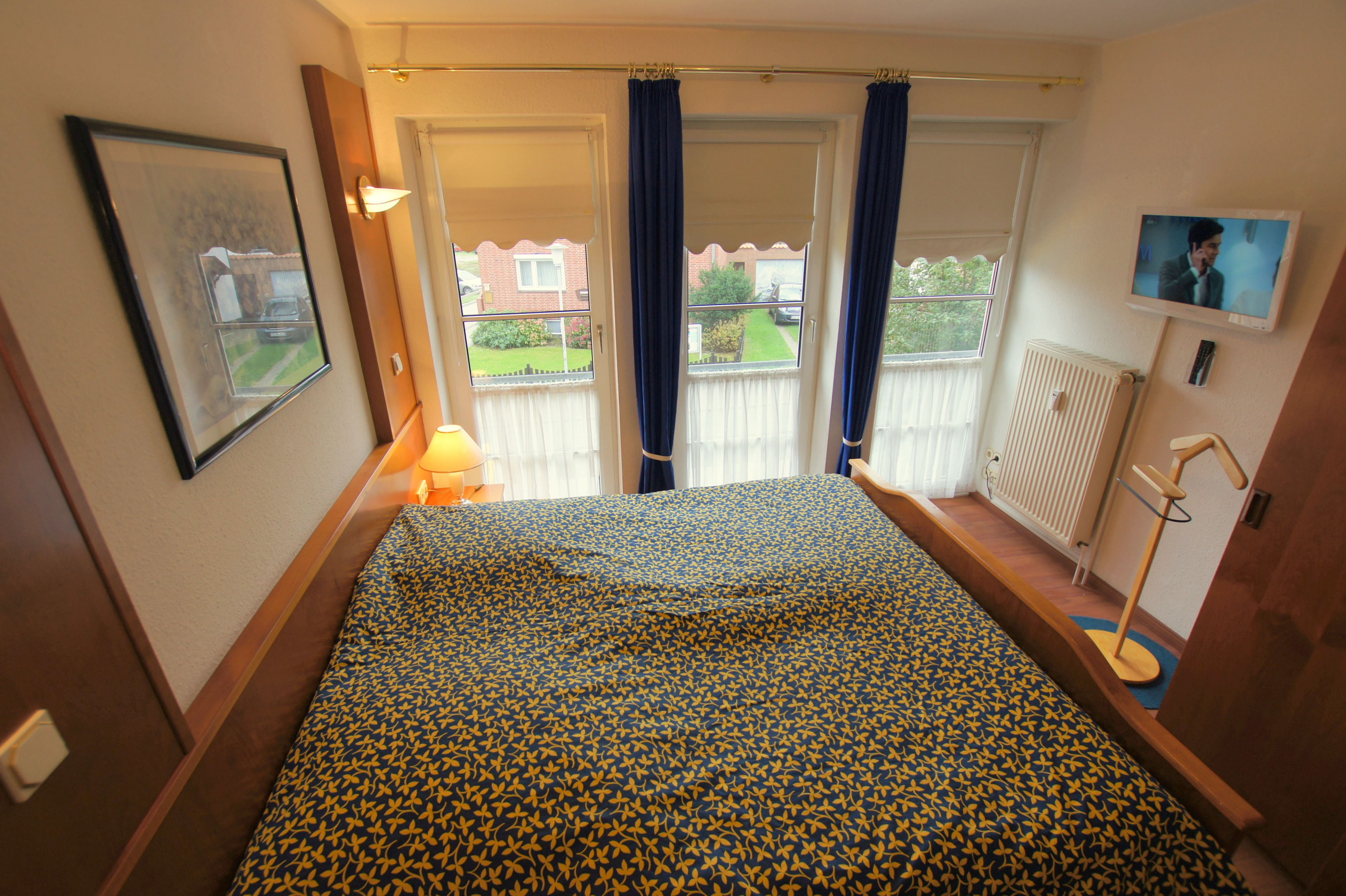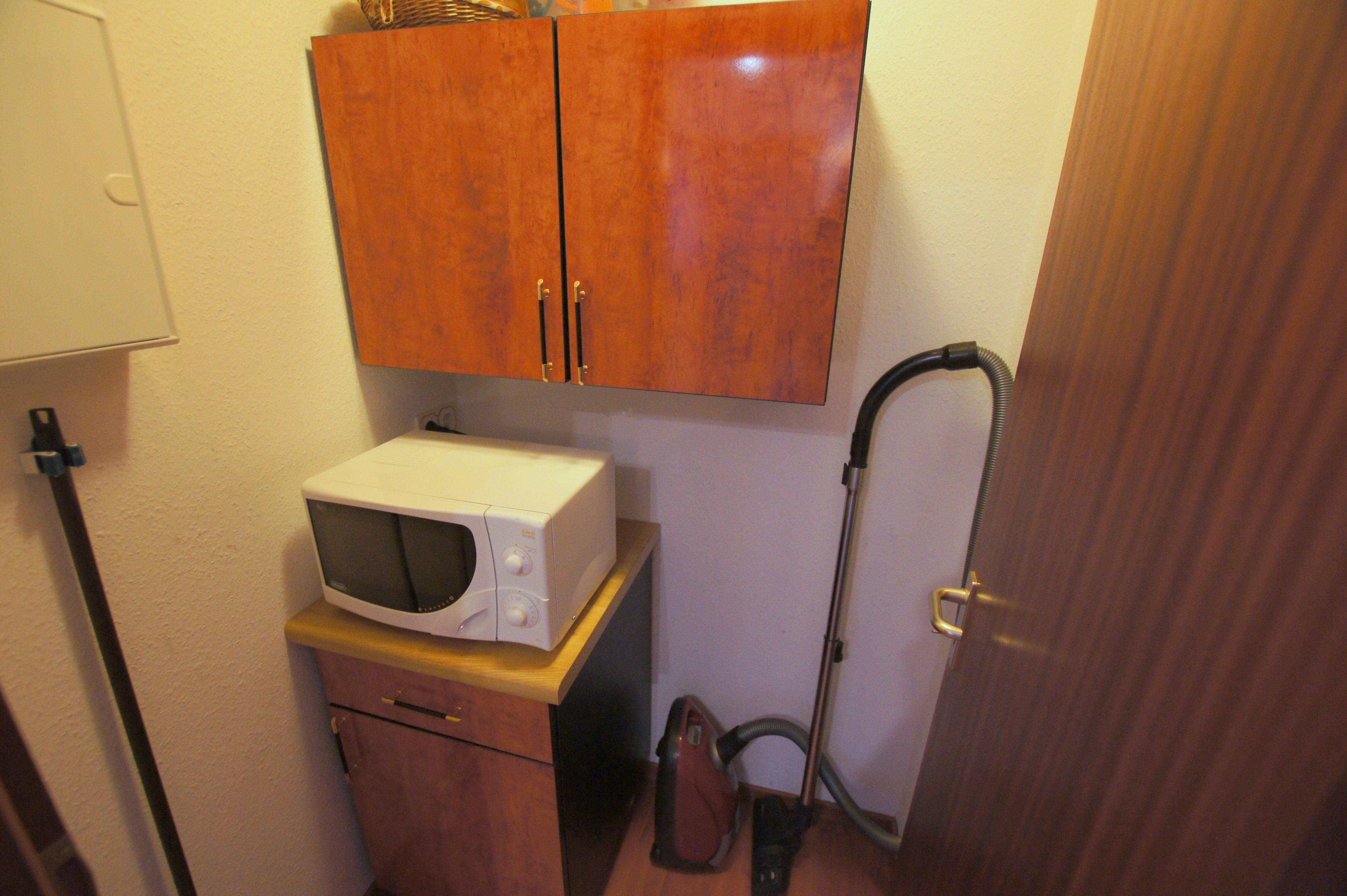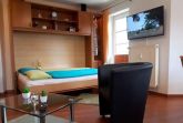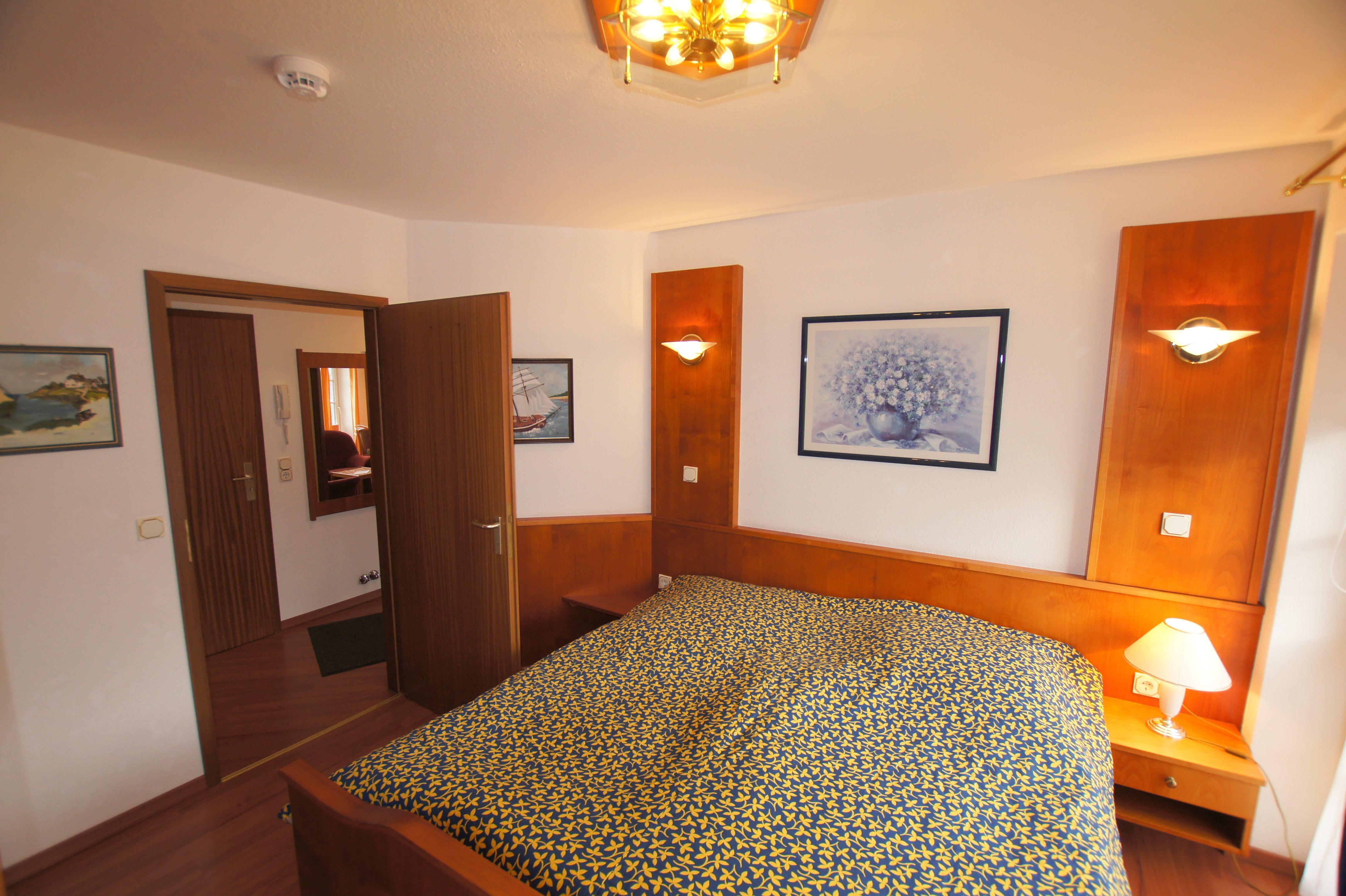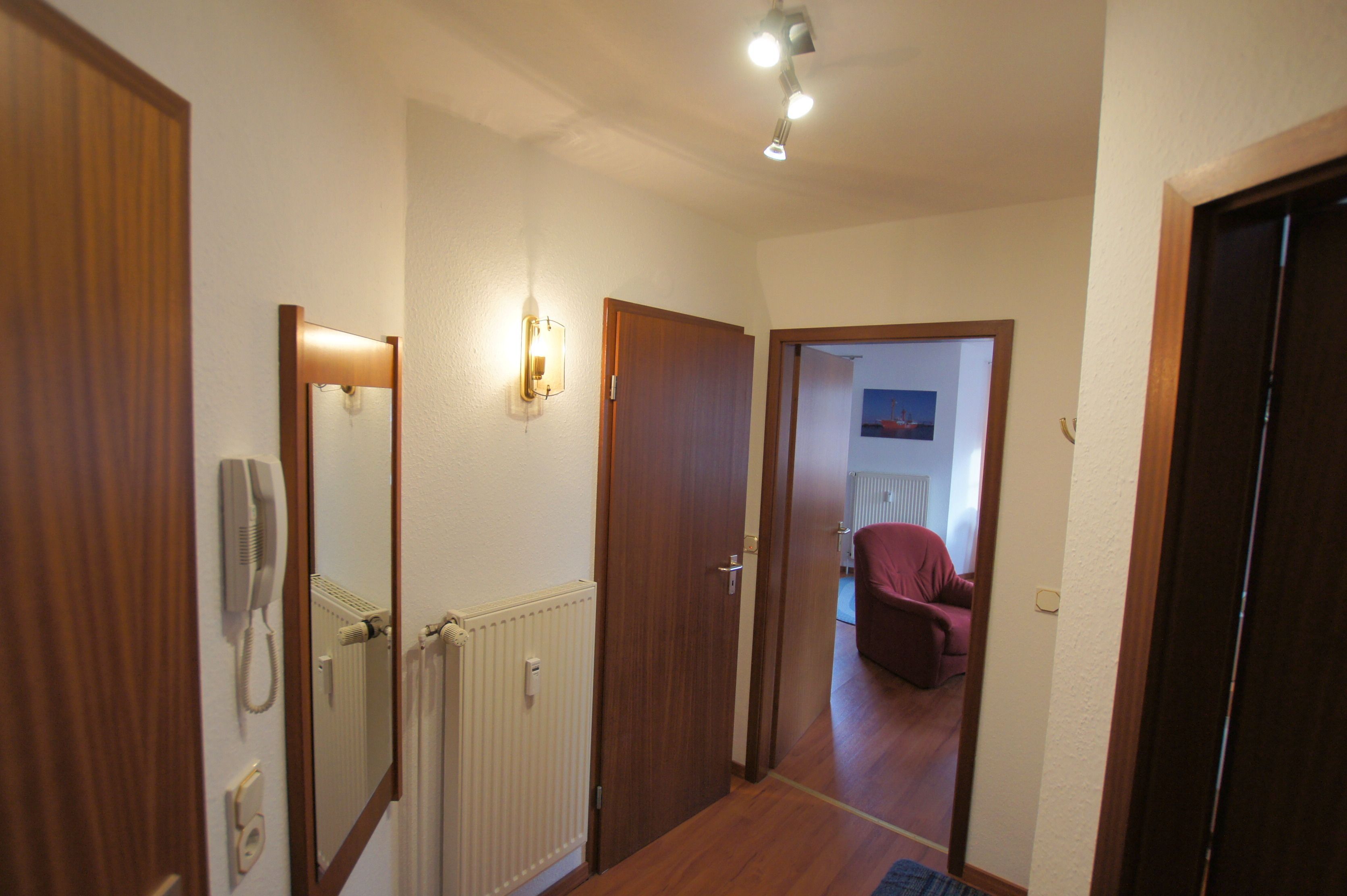 Die Ferienwohnung mit einer Größe von ca. 45m² Wohnfläche ist komplett bis zu 4 Personen ausgestattet. 1 Wohnzimmer mit Essplatz am Fenster, Sofa, Sessel und Schrankbett (1,40m x 2,00m), 1 Flachbildfernseher (32-Zoll-Fernseher), Küchenzeile (2 Plattenherd, Kühlschrank, Kaffeemaschine, Wasserkocher, Mikrowelle und Toaster),1 Schlafzimmer mit Doppelbett, 1 Flachbildfernseher (26-Zoll-Fernseher) und Schrank, 1 Abstellraum, Flur, Bad mit Dusche, WC, Waschbecken und Spiegel, Nichtraucherwohnung, keine Haustiere, Tiefgaragenstellplatz am Haus.