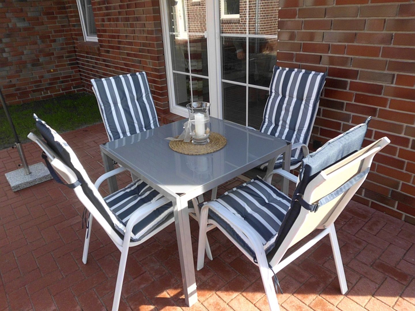 Der eingezäunte Garten mit Liegewiese und abschließbarem Gartentor verfügt über 2 Terrassen. Eine Terrasse mit Tisch und 4 Stühlen vor dem Wohnbereich, eine weitere Terrasse mit Tisch , 4 Stühlen und Sonnenschirm befindet sich im Garten im Schutz der Gartenhäuser und lädt zum gemütlichen Essen und Grillen ein. Zusätzlich stehen 2 Sonnenliegen zur Verfügung.