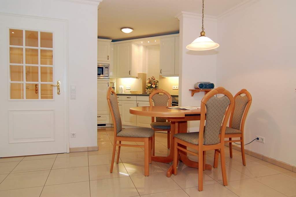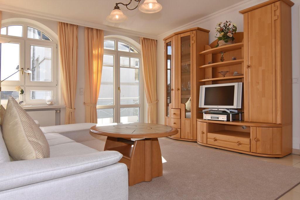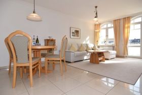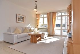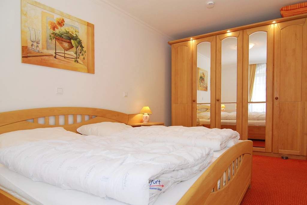 Schöne 2-Zimmer-Ferienwohnung im Haus Residenz Bismarck, ca. 60 m² im 1.OG. Wohnraum mit Couchecke und Esstisch, Kabel-TV, Radio, Südbalkon mit Balkonmöbeln, offene Küche mit Geschirrspüler, Mikrowelle und Backofen, Schlafzimmer mit Doppelbett und Zugang zum Balkon, großes Bad mit Dusche und Wanne, Flur mit Garderobe. App. ist außer im Schlafzimmer gefliest. Garagenstellplatz Nr. 11. Tierhaltung ist verboten. Fahrradkeller und Waschküche vorhanden. Im Haus befinden sich ein Schwimmbad und eine Sauna. Bettwäsche und Handtücher sind zur Anreise aufgezogen.